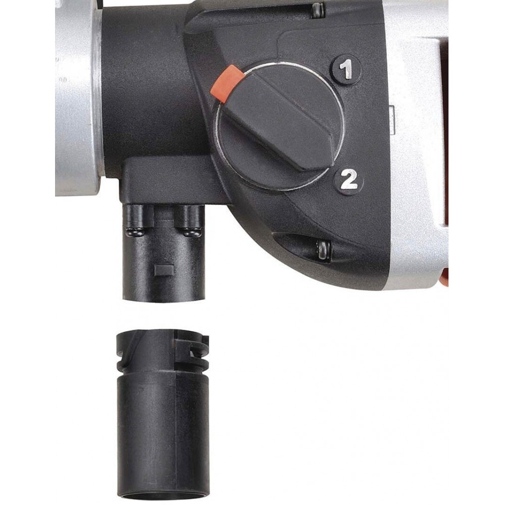 Дриль AGP DM52D високоточний інструмент із широким спектром можливостей та степів захисту. Основним напрямком є свердління отворів великих діаметрів у бетоні, граніті, камені, мармурі. Нерідко це потрібно для прокладання проводки, різних кабелів, комунікаційних труб. Виняткова потужність двигуна дозволяє виконувати тривалі роботи з великою продуктивністю. Особливості алмазного дриля Основний механізм дриля алмазного свердління AGP DM52D - це електричний двигун з підвищеною потужністю 1,8 кВт - достатня потужність для якісної роботи інструменту. Має дві швидкості свердління, для першої швидкості - оберти на холостому ходу досягають 1800 за хвилину, під навантаженням 1080 обертів за хвилину. Для другої збільшеної швидкості: на холостому ходу досягається 3600 обертів за хвилину, під навантаженням 2160 об/хв. Підключається електродвигун до мережі змінного струму з напругою 220-230 і частотою 50 Гц за допомогою довгого мережевого шнура. Кнопка живлення знаходиться на перемикачі швидкостей. Дриль алмазного свердління AGP DM52D має два режими роботи, свердління всуху та свердління з подачею води. При сухому свердлінні можливе перемикання на функцію «м'якого удару», це щадний режим, при якому алмазна коронка зберігається такою ж гострою, підвищується її термін експлуатації. Додатковою функцією до електричного дриля є робота з ударною дією. Тоді до комплекту дриля додається перемикач ударного свердління. Дриль двошвидкісний, перемикач швидкостей знаходиться на бічній частині корпусу інструменту. Алмазна коронка, що є ріжучим блоком, здатна робити як наскрізні, так і глухі отвори. В інструменті існує можливість підключення перехідників та шлангів для переходу від режиму сухого свердління до режиму подачі води. Основні характеристики дриля Алмазна дриль здатна пробивати отвори у твердих матеріалах діаметром 80 мм. Шпиндель має зовнішнє різьблення М18. Шийка горловини у діаметрі - 60 мм. Компактний інструмент вагою 5,2 кг має габарити: довжина 505 мм, ширина 105 мм, висота 210 мм. У комплекті з дрилем йдуть різні розміри шпинделя, для виконання різних процесів. Відмінні риси дрилі Важливою рисою дриля алмазного свердління AGP DM52D є наявність плавного пуску. Завдяки якому оператор може сфокусувати місце свердління та досягти максимальної точності у роботі, постійно контролюючи процес. Перехід від малих обертів до великих істотно впливає якість виконуваних робіт. Захисні функції інструменту Алмазна дриль надійно захищена від можливих поломок приладу. Основним захистом є система повітряного охолодження, завдяки якій інструмент не перегрівається, чим продовжується термін безвідмовної роботи всіх деталей та механізмів. У випадку, якщо корпус двигуна перевищить можливий безпечний рівень температури, система відключить дриль автоматично, і включить тільки після повного остигання. Система захисту від перевантажень спрацює, якщо підвищення навантажень буде неприпустимим і вестиме до можливого виходу з ладу інструменту. Механічна запобіжна муфта редуктора спрацьовує практично миттєво збільшення навантажень, також вона захищає прилад від механічних ушкоджень. Для захисту користувача під час роботи на ручці інструменту знаходиться кнопка блокування. Дриль алмазного свердління AGP DM52D має клас захисту PRCD, що говорить про те, що дриль має вимикач, який захищає