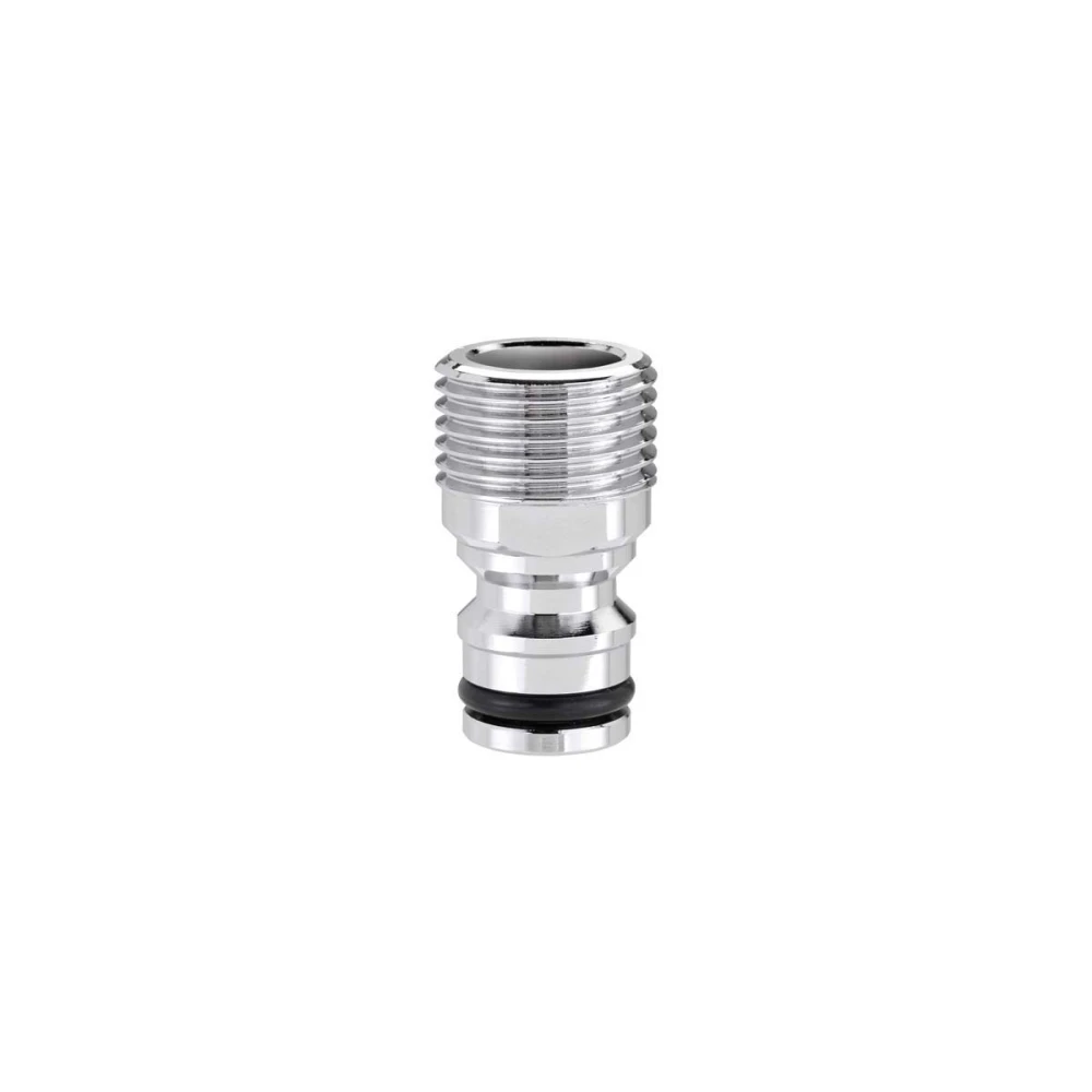 Claber Metal-Jet 9608 - насадка-конектор на садовий кран для підключення будь-яких з'єднань системи Claber Quick-Click типу "мама". Має зовнішню різьбу 1/2" для вкручування у кран.