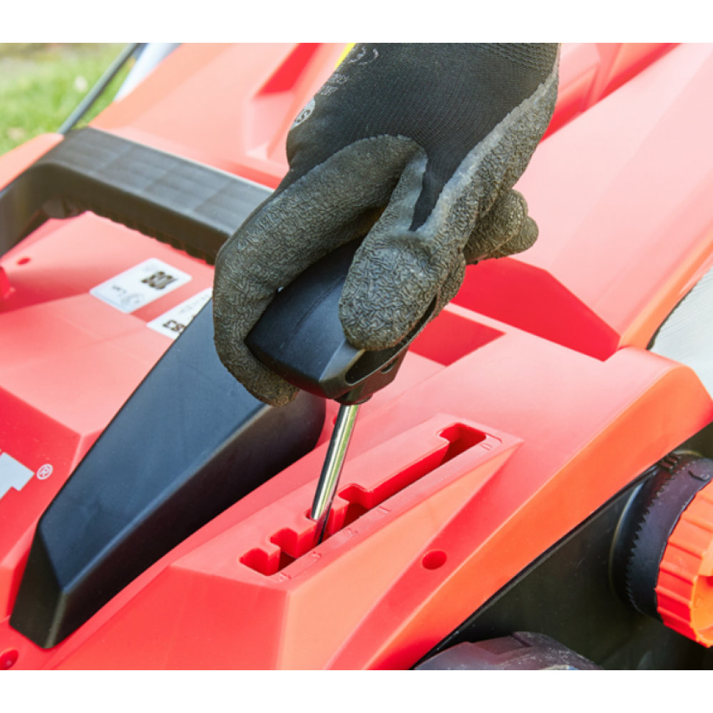 - Можливість налаштування глибини роботи в багатьох рівнях, включаючи регулювання від +6 до -12 мм, що дозволяє адаптувати пристрій до різних типів газонів.