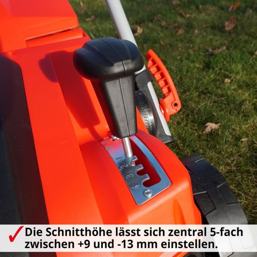 Регульована глибина різки: 5-ступеневе регулювання глибини різки від -13 до +9 мм дозволяє точно контролювати вплив на газон в залежності від його стану та потреб.