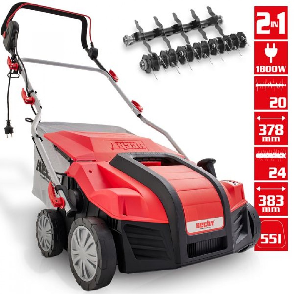 Потужний електричний аератор Hecht 1848 2 in 1- ідеальний садовий інструмент по догляду за газоном. Він поєднує дві важливі функції: прорізування живильного шару землі, збагачуючи її вологою і повітрям і очищення газону від рослинних залишків та сухої трави. Результат - здоровий, гарний газон!