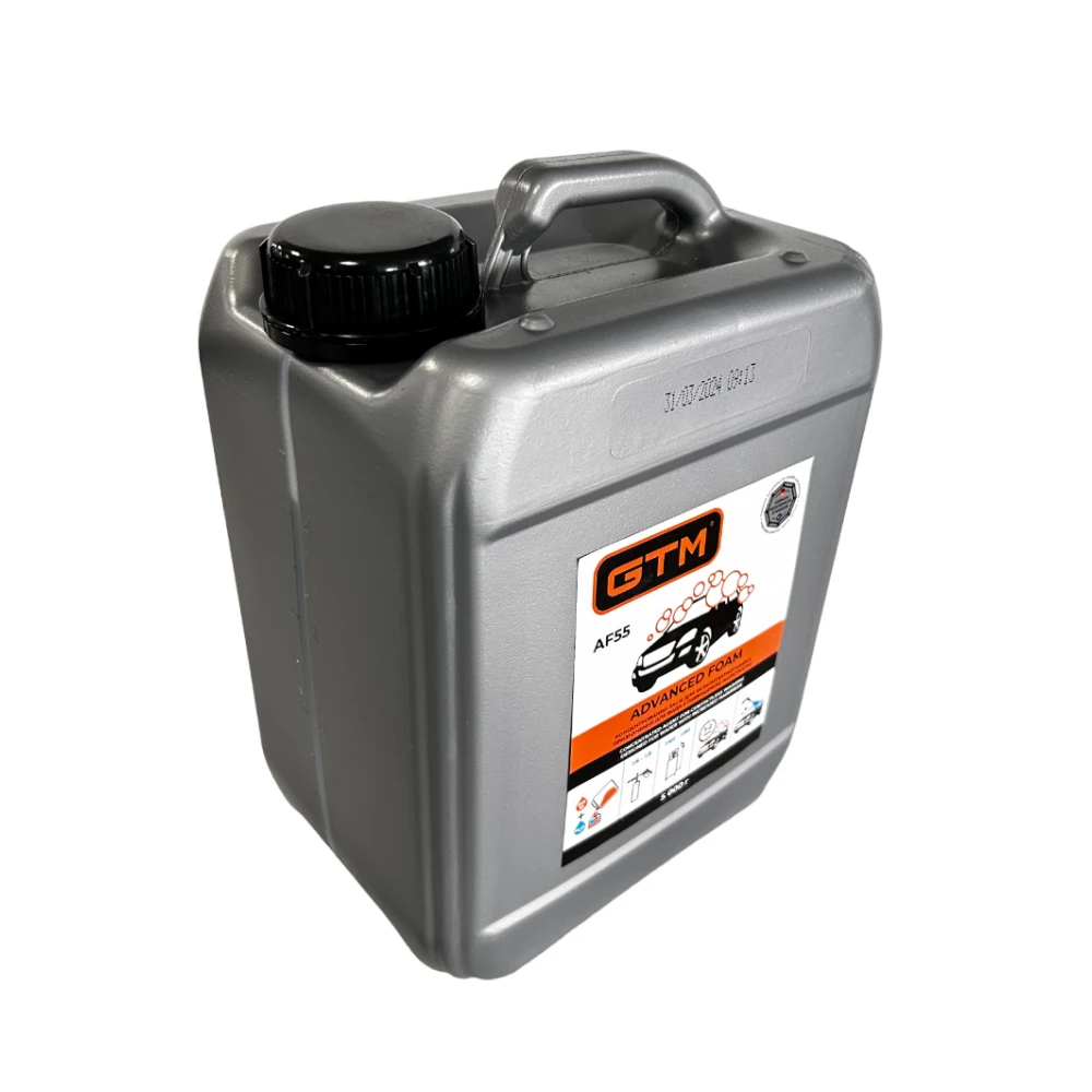 GTM Advanced Foam AF55 - концентрований високопінний засіб для очищення поверхні від усіх видів забруднень, включно з дорожнім пилом, паливним забрудненням або залишками комах. Застосовується для всіх видів безконтактного миття автомобілів, велосипедів і мотоциклів. Надає поверхні блиск без розводів. Піна безпечна для лакофарбового покриття, пластмас, гуми та металів.