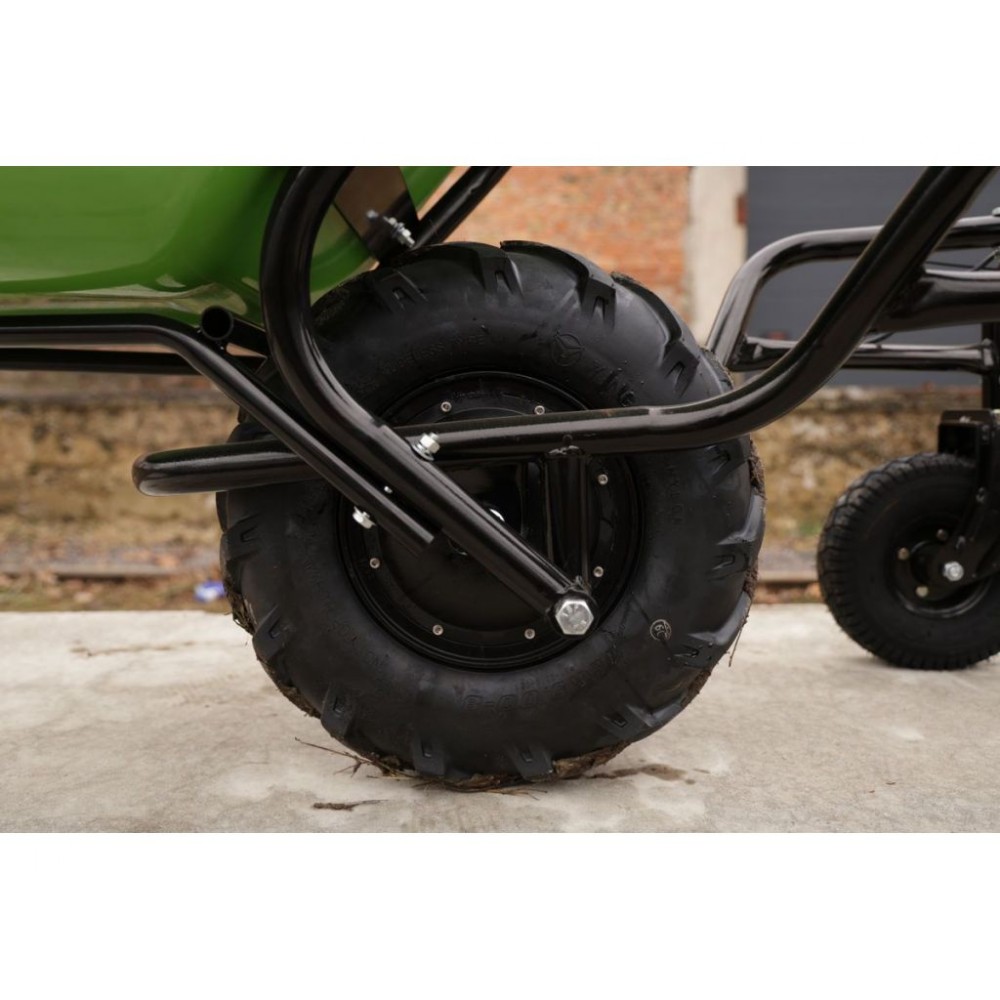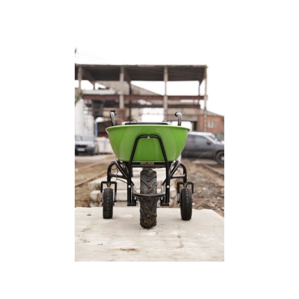 Зручність та надійність - ось ключові характеристики цієї електричної тачки. Вона оснащена міцним 80 л. коритом з порошковим покриттям, яке має можливість відкидуватися вперед. Конструкція тачки розрахована на навантаження до 260 кг, що робить її ідеальним помічником для важких завдань та інтенсивного використання.