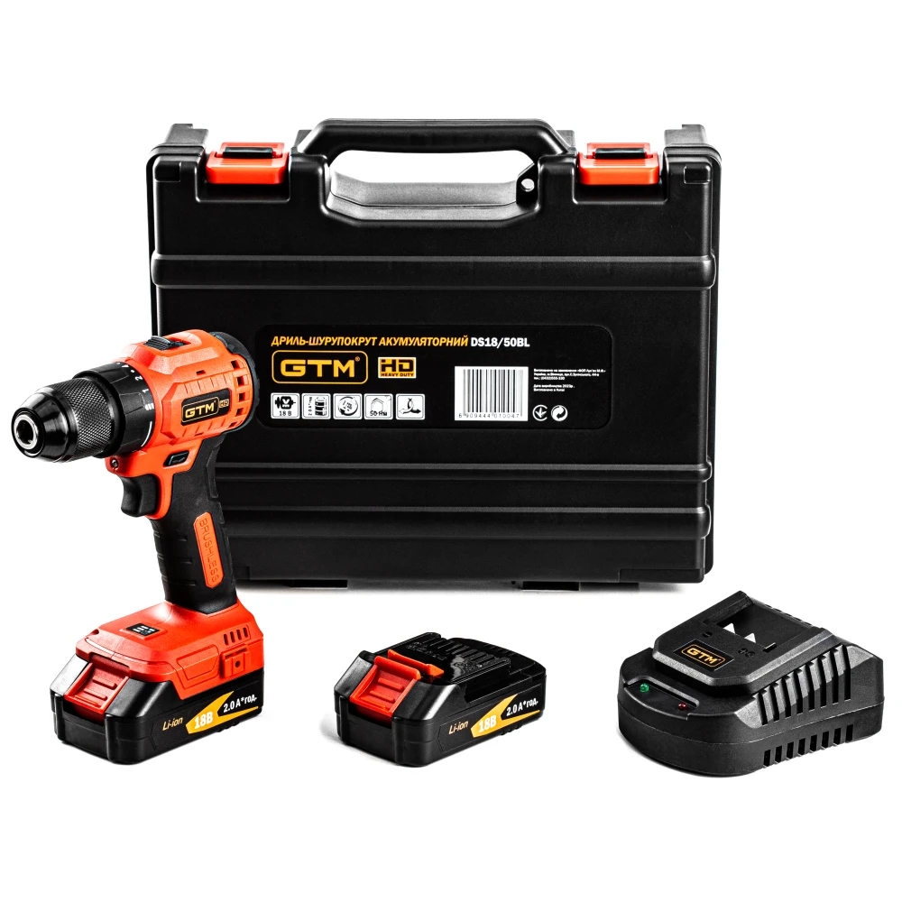 Акумуляторний безщітковий шурупокрут GTM DS18/50BL + 2 АКБ і ЗП у кейсі (DS18/50BL)