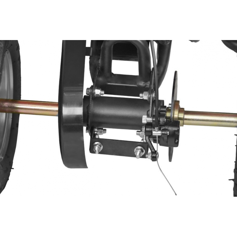 Працює від двигуна потужністю 1000 Вт, який приводить в рух задню вісь через ланцюг.