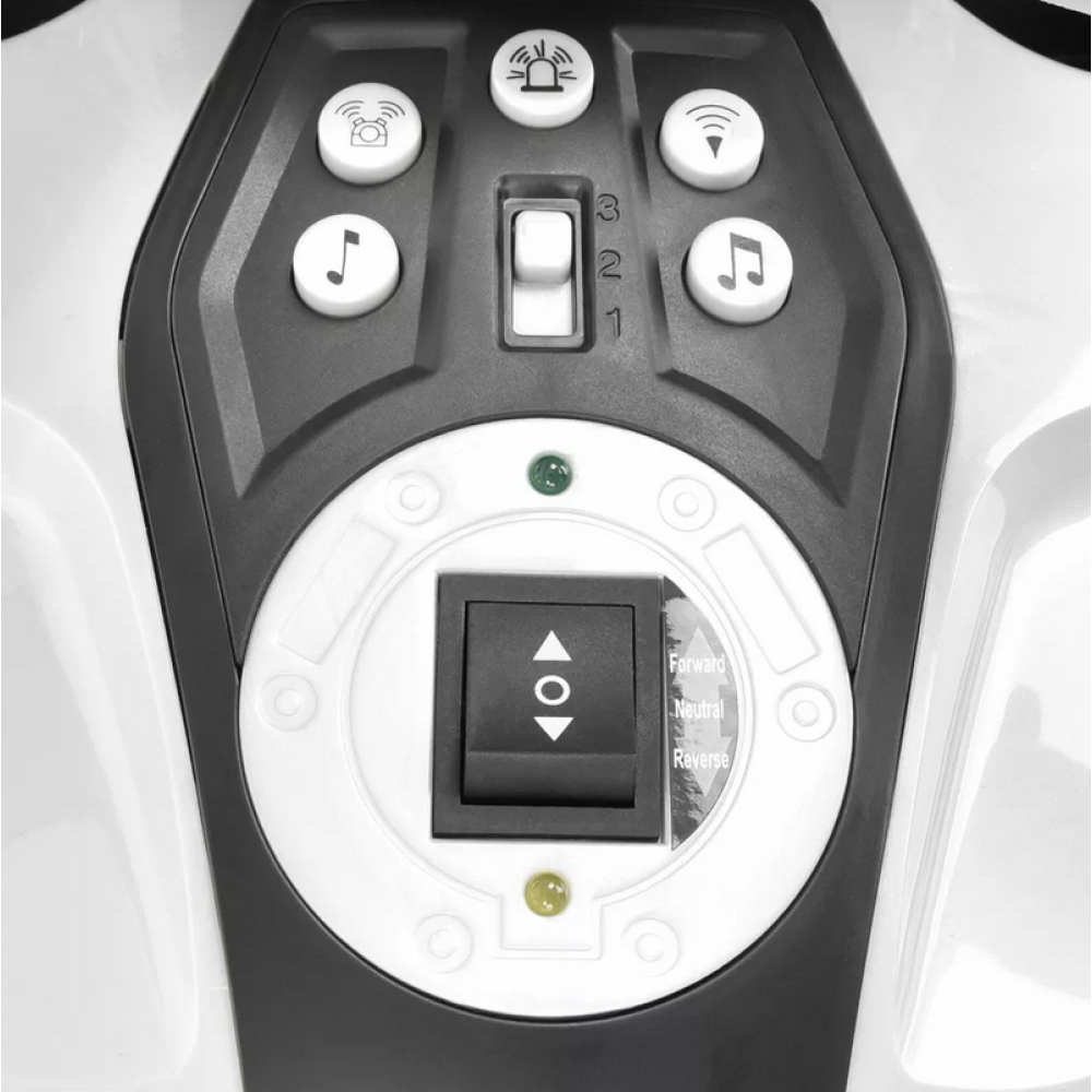 Дитячий акумуляторний мотоцикл. Мотоцикл призначений для дітей від 3 до 8 років. його вантажопідйомність 30 кг. максимальна швидкість 3 - 6 км/год. Живиться від акумулятора 12 В / 7 Ач. З зарядним пристроєм, що входить в комплект, акумулятор повністю заряджається за 8-12 годин, час роботи приблизно 1-2 години в залежності від ваги дитини та місцевості. Запуск мотоцикла здійснюється ключем, після повороту ключа пролунає звук запуску двигуна і засвітиться бортова сигналізація. На баку є пульт управління з кнопками. З їх допомогою можна вмикати та вимикати маяки, запускати звук клаксона, звук двигуна та музику. Трипозиційний перемикач на панелі змінює швидкість, а інший перемикач перемикає вперед і назад. Управління мотоциклом здійснюється за допомогою педалі під правою ногою.