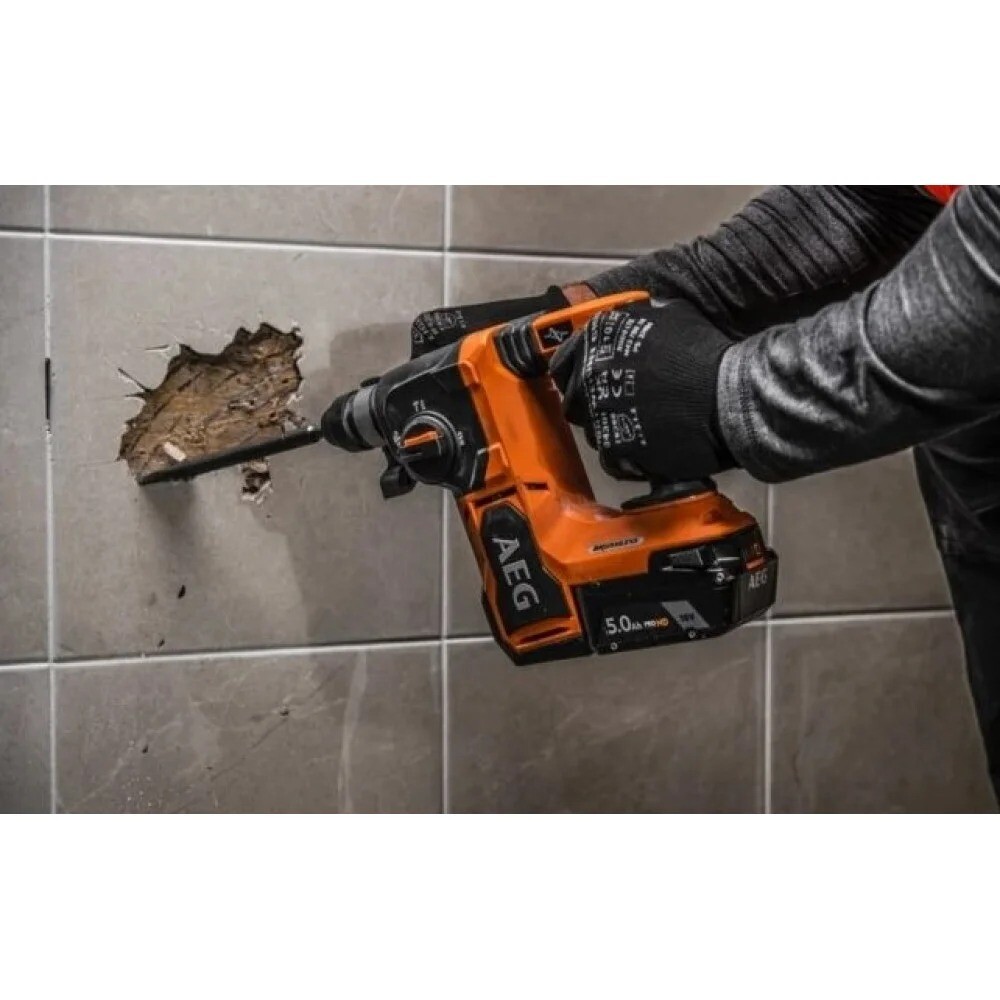 AEG BBH18BL2-502C - акумуляторний перфоратор для професійного використання, розроблений для свердління, буріння з ударом, без удару та виконання довбальних робіт з бетону, цегли та каменю. Завдяки компактній формі та ретельно продуманій ергономіці модель ідеально підходить для використання в умовах обмеженого простору, а також при будівельних, ремонтних та демонтажних роботах.