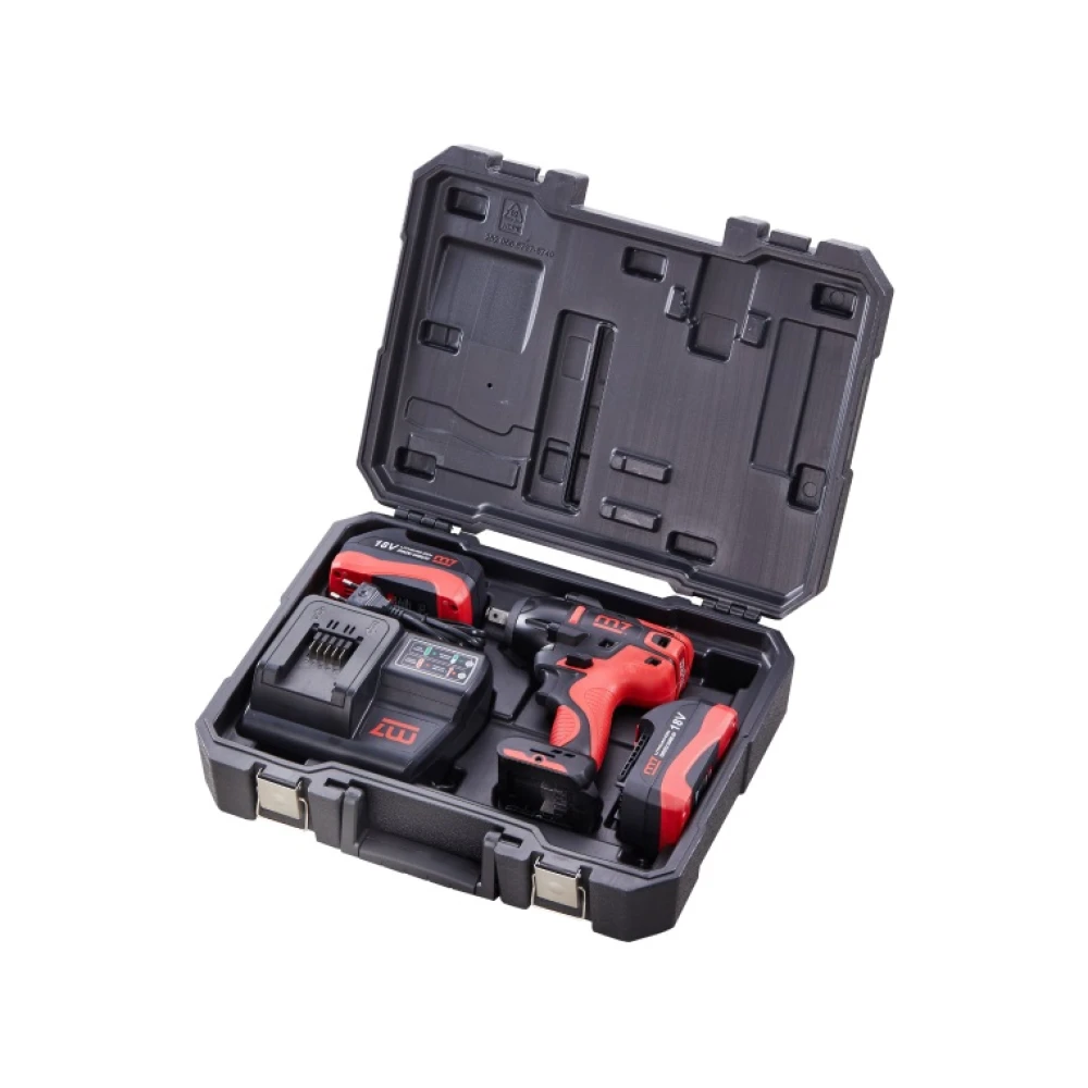 Mighty Seven DW-401A - безщітковий ударний гайкокрут підвищеної потужності, який призначається для постійного професійного використання. Живиться від Li-Ion акумуляторів з напругою 18 В. В гайкокрутвбудований 3-швидкісний редуктор з металевими шестернями, що значно збільшує термін служби інструменту. Швидкість при роботі регулюється за допомогою перемикача і досягає 2200 об / хв. Кількість ударів регулюється на корпусі кнопкою для більш точного налаштування під кріплення. Гвинтокруттакож має 3 встановлені режими роботи з різною кількістю ударів. ГайкокрутMighty Seven DW-401A поставляється в захисному кейсі з 2 акумуляторами і зарядити пристрій.