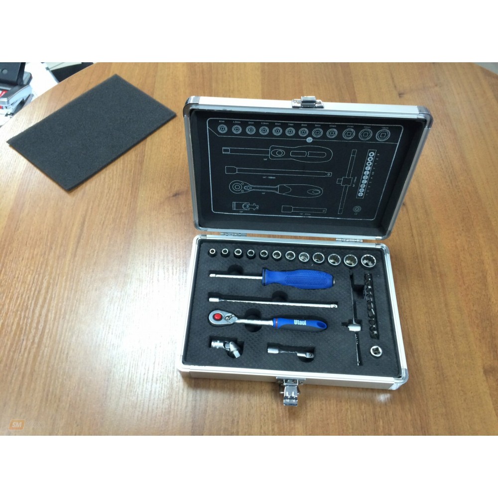 - Биты 20 шт.; - адаптер 1 шт.; - свечной ключ ½ дюйма: 16мм, 21мм; - трещотка ½ дюйма/250 мм; - трещотка ¼ дюйма/140 мм; - универсальный переходник ½ дюйма, ¼ дюйма; - направляющая линейка ½ дюйма/250 мм; - рукоятка удлинителя ¼ дюйма/160 мм; - торцевые головки ¼ дюйма: 4мм, 4.5мм, 5мм, 5.5мм, 6мм, 7мм, 8мм, 9мм, 10мм, 11мм, 12мм, 13мм; - удлинитель ½ дюйма/125 мм; - удлинитель ¼ дюйма/100 мм; - торцевые головки ½ дюйма: 14мм, 15мм, 17мм, 18мм, 19мм, 20мм, 21мм, 22мм, 24мм, 27мм.