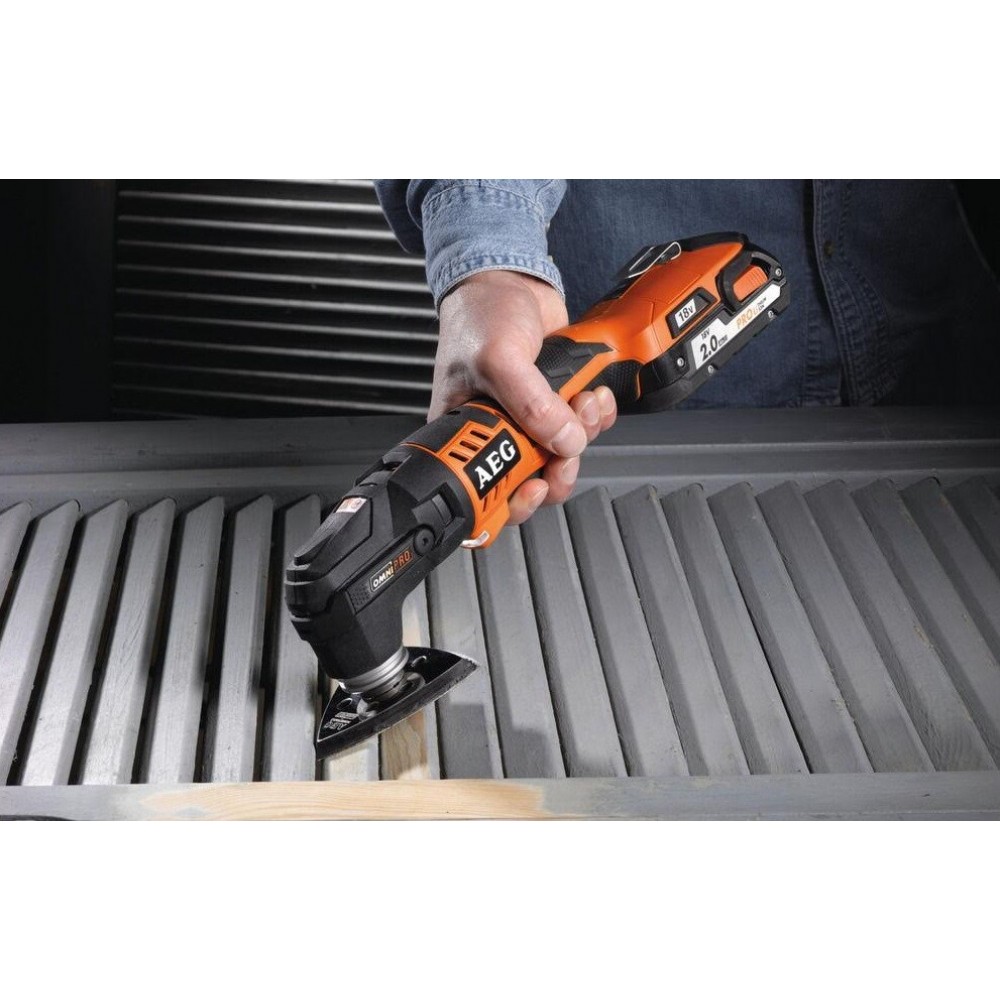 Многофункциональный инструмент AEG OMNI18C-0KIT1X предоставляет неограниченные возможности в ремонте и строительстве. С помощью одного инструмента можно осуществлять десятки разнообразных операций, включая продольный и криволинейный распил, шлифование и зачистку поверхности. В комплектацию включены несколько видов оснастки.