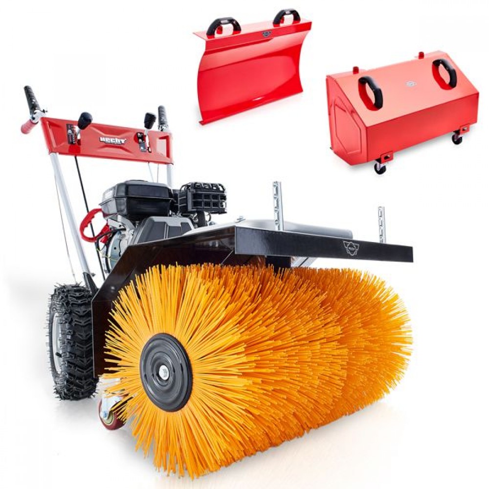 В комплекті тільки ручка з підмітальною щіткою, короб, відвал і снігоочисник купуються окремо.