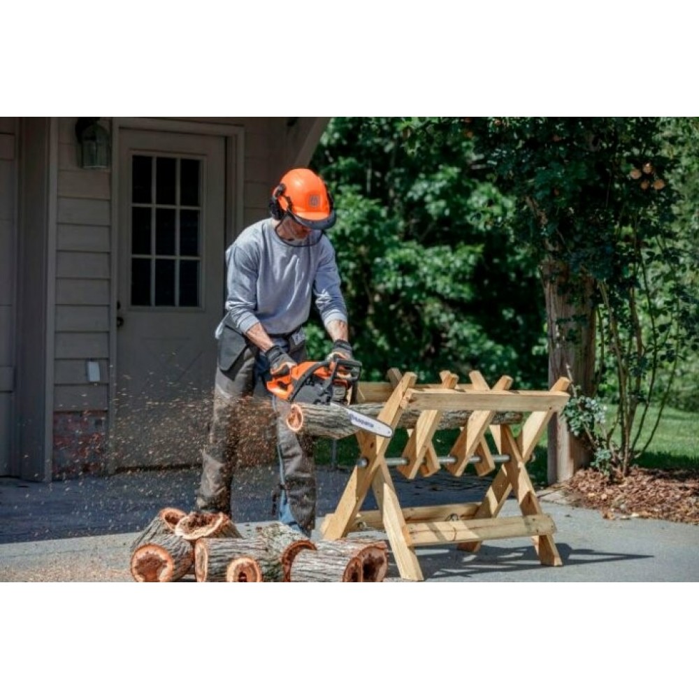 Мобільна бензопила з шиною 35 см універсальна при експлуатації в побуті, допомагає оперативно відрізати дошки та брус, спилювати молоді дерева, нарізати дрова для мангалу або каміну. Функціонал моделі наближений до професійних версій, внаслідок чого розпил здійснюється на 35% швидше аналогів. Обладнана гальмом ланцюга, що виключає травмування користувача в аварійних ситуаціях. Ланцюгове полотно коригується бічним натягувачем.