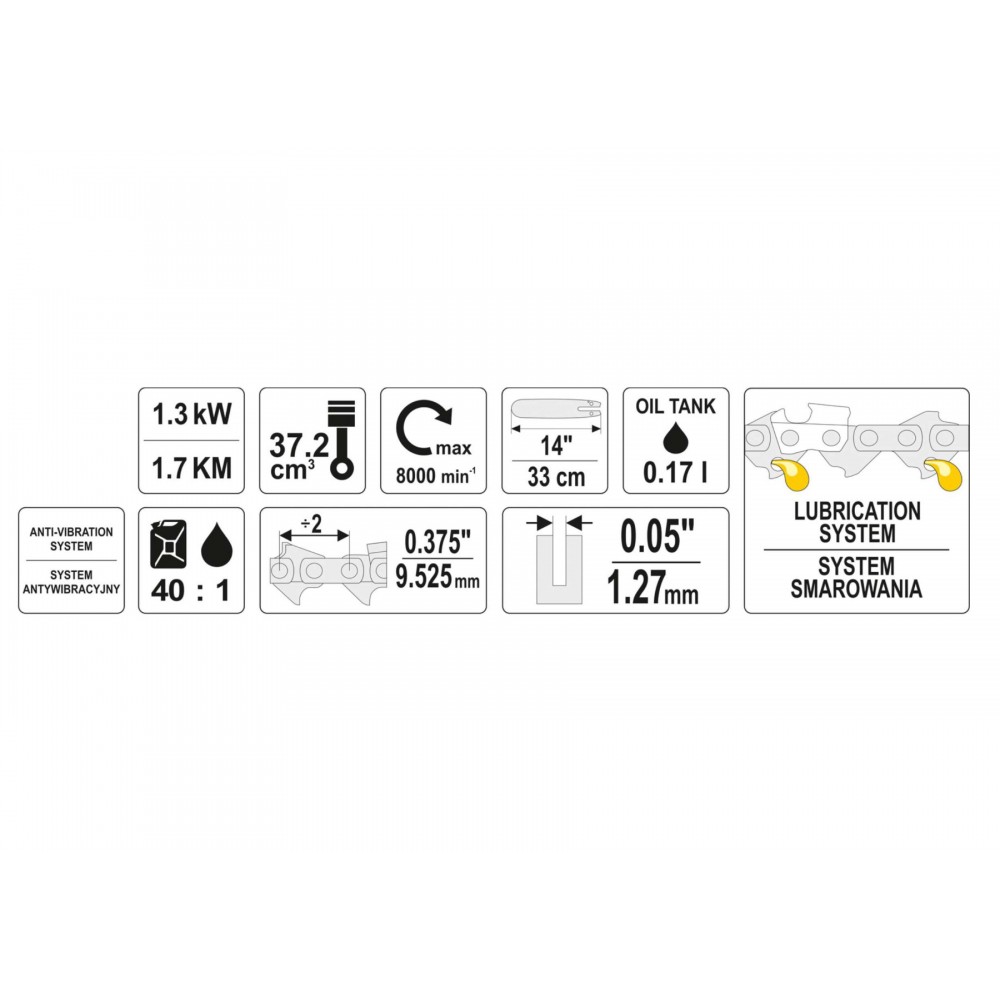 Бензопила ланцюгова YATO 37.2 см³ 1.3 кВт шина- 14" (33 см)