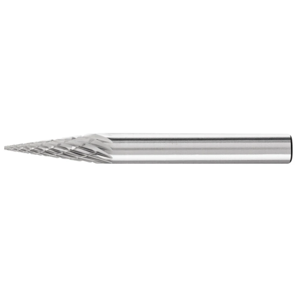 Борфреза конічної форми по DIN 8032 з зубами по DIN 8033, з плоским наконечником. Підходить для грубої і тонкої обробки.