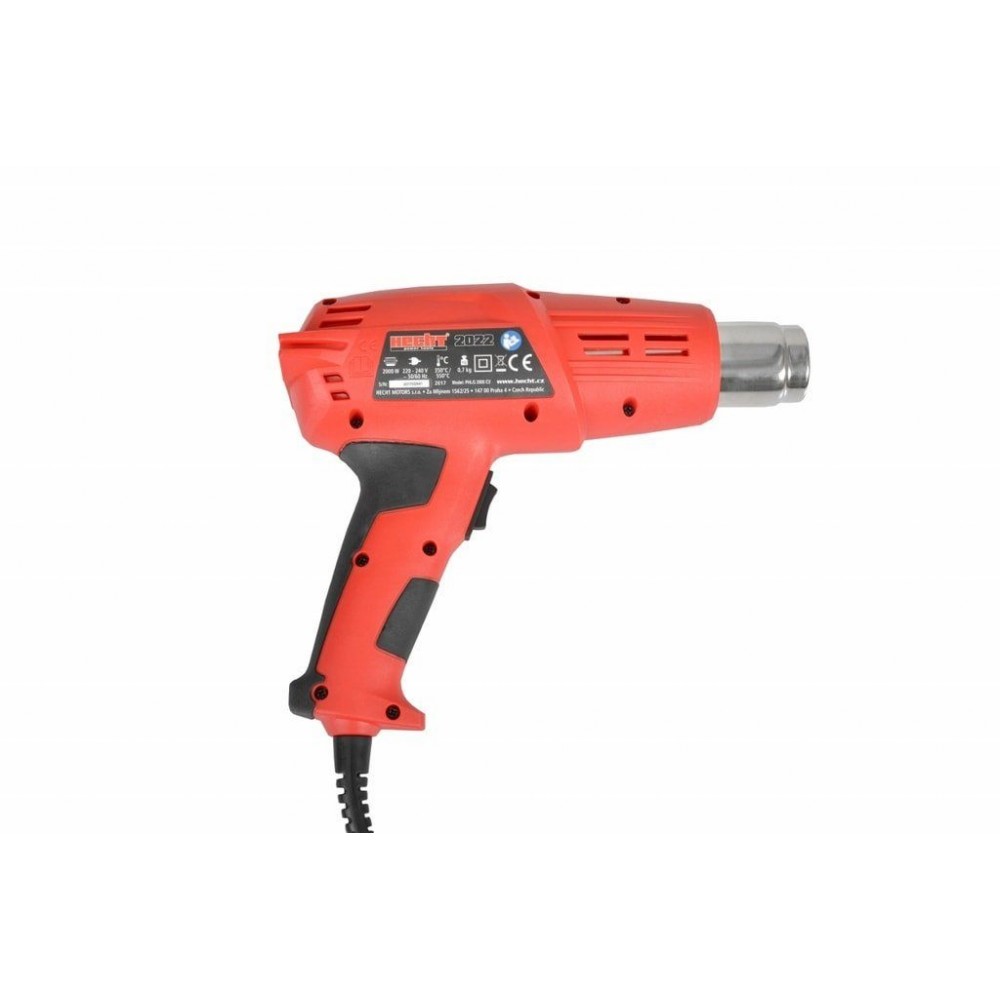 Будівельний фен HECHT 2022 - з ручний помічник для кожної майстерні, гаража чи домашнього господарства. Його використовують для видалення фарби, нагрівання заморожених матеріалів, згинання пластику, сушіння мокрих поверхонь, знищення бур’янів і багато іншого. Потужність 2000 Вт, живиться від стандартної електричної розетки 230 В / 50 Гц. Температури повітря від 350 до 600 °C. Потік повітря становить 480 літрів на хвилину.