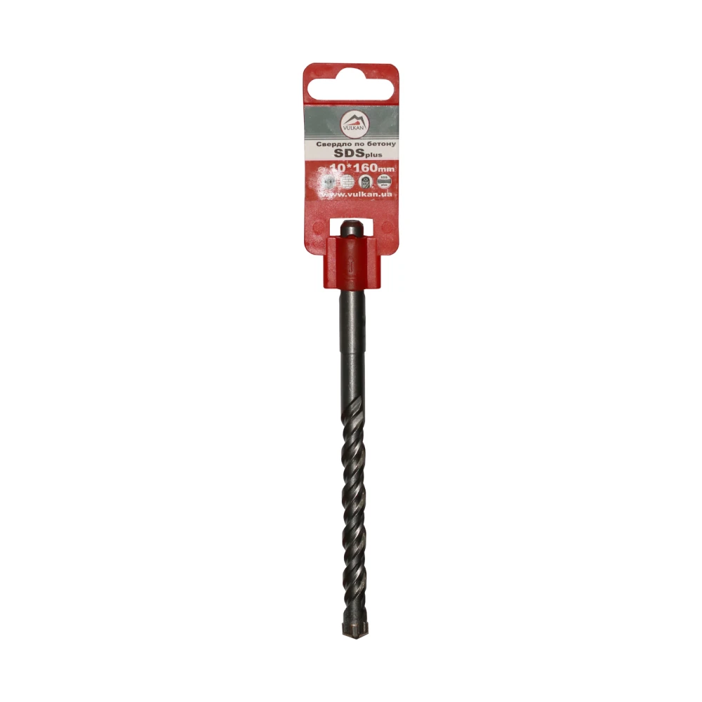 VulkanSDS PLUS 10*100/160мм - бур для свердління технічних отворів у поверхнях з бетону, цегли, каменю. Ріжуча пластина з вольфраму карбіду робить свердло надзвичайно твердим, а форма з двома канавками забезпечує ефективне відведення пилу з робочої зони. Завдяки універсальному хвостовику SDS PLUS бур підходить для всіх перфораторів з даною системою кріплення.