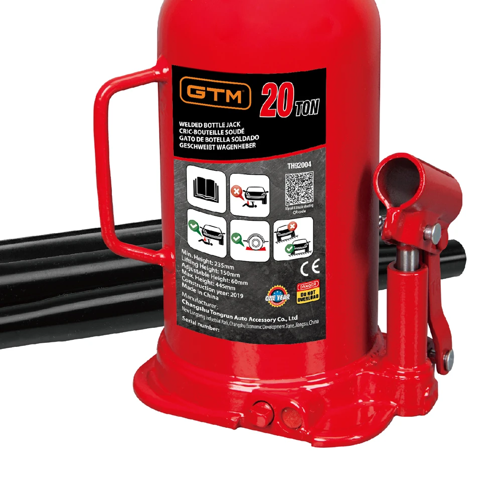Опис Домкрат гідравлічний 20т GTM Т92004 пляшковий одноштоковий
