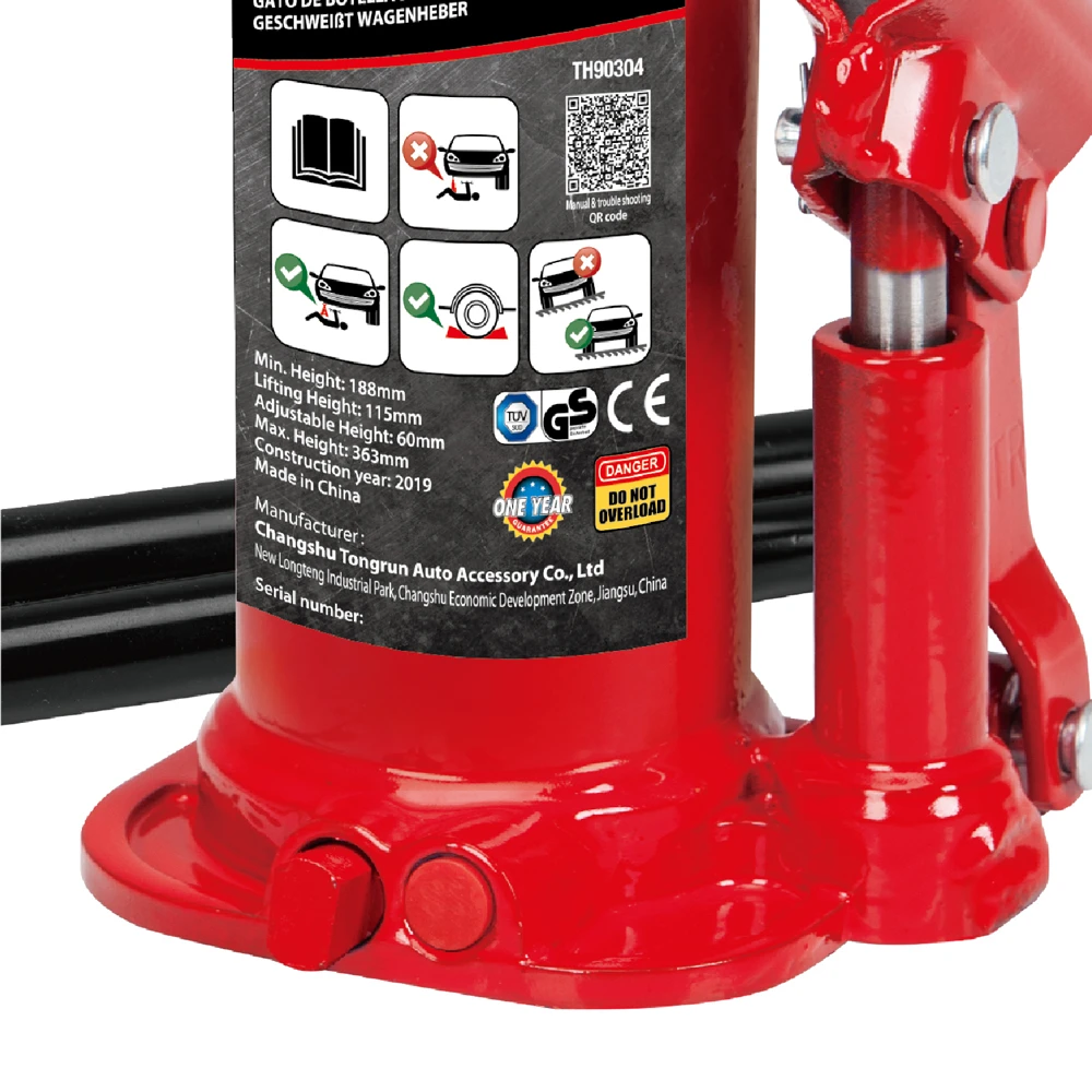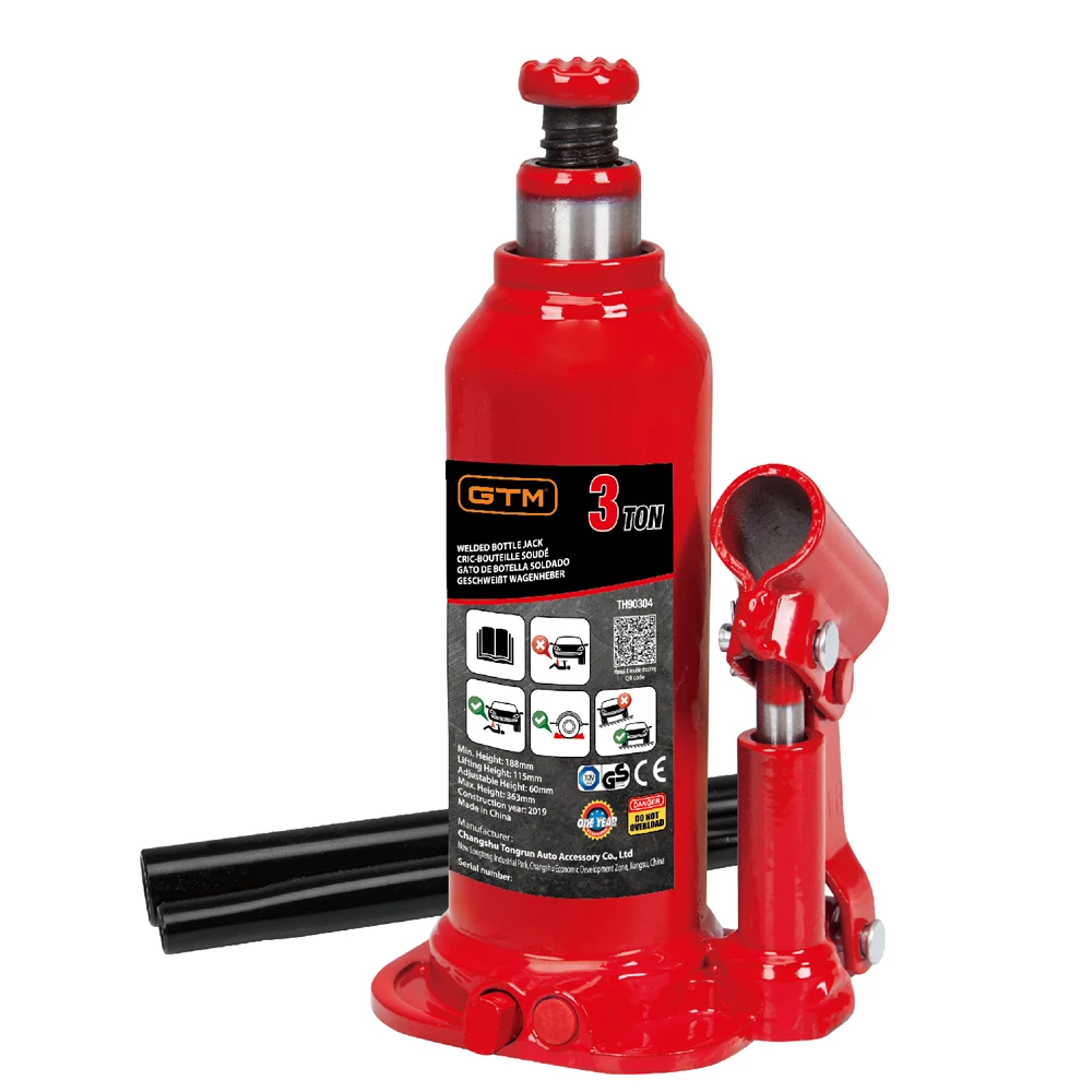 Опис Домкрат гідравлічний 3т GTM Т90304 пляшковий одноштоковий