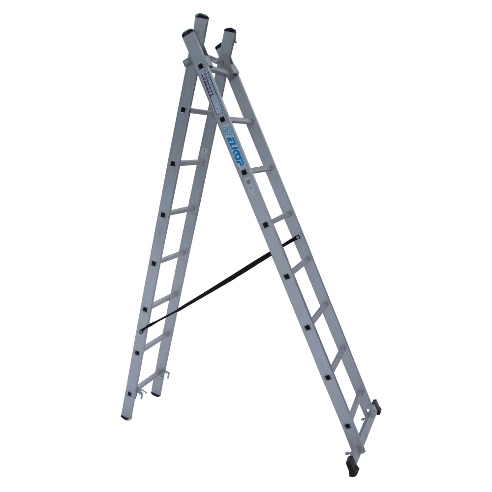 Драбина Elkop VHR Trend 2x8 - двосекційна універсальна алюмінієва драбина, яка добре підходить як для побутового, так і для професійного використання. Представлена модель може використовуватися як в ролі приставної драбини, так і в якості стремянки. Запобіжні стропи гарантують безпечне використання і запобігають випадковому розкриттю в процесі експлуатації.