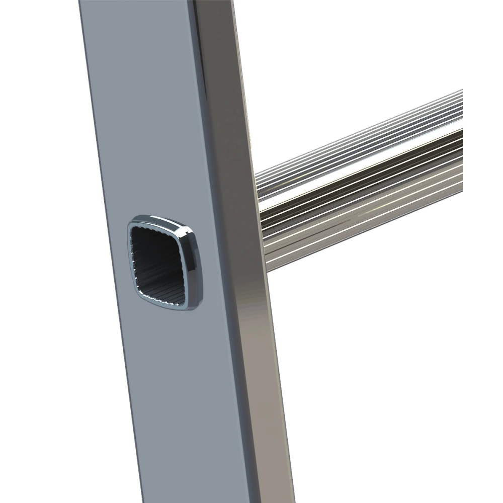 - Драбина виготовлена з алюмінію, що забезпечує її легкість в порівнянні з дерев'яними або залізними аналогами (2,9 кг)