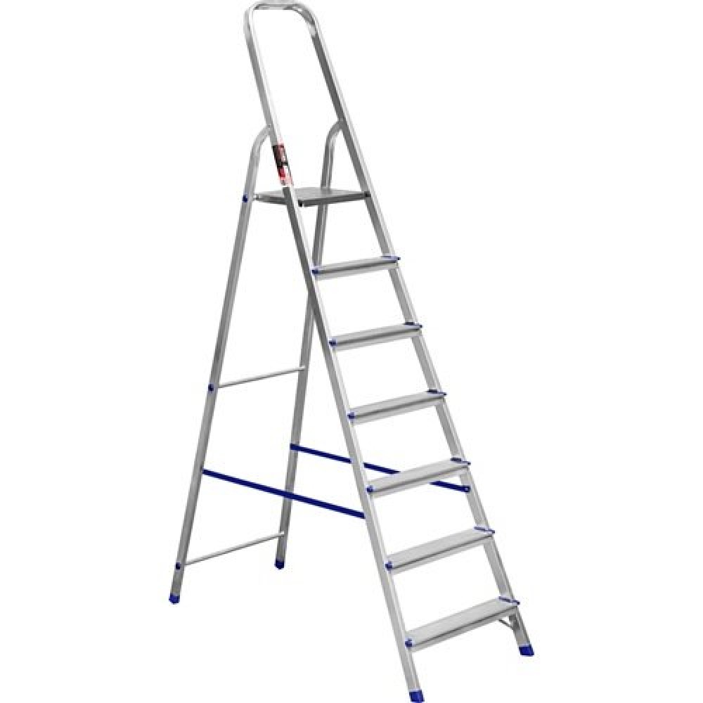 Stark SALW507 складається з 7-ми алюмінієвих сходинок, які зафіксовані заклепками. Ребриста поверхня сходинки запобігає ковзанню ноги для ще більшої безпеки. Верхня площадка виготовлена з міцної сталі, вона надійно фіксується в розкладеному стані. Зручно розміститися на драбини допомагає опора-рукоятка, за яку можна триматися, підіймаючись сходами.