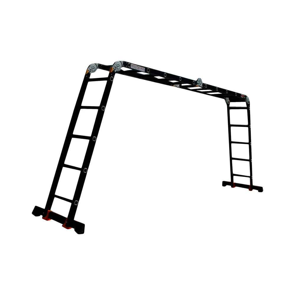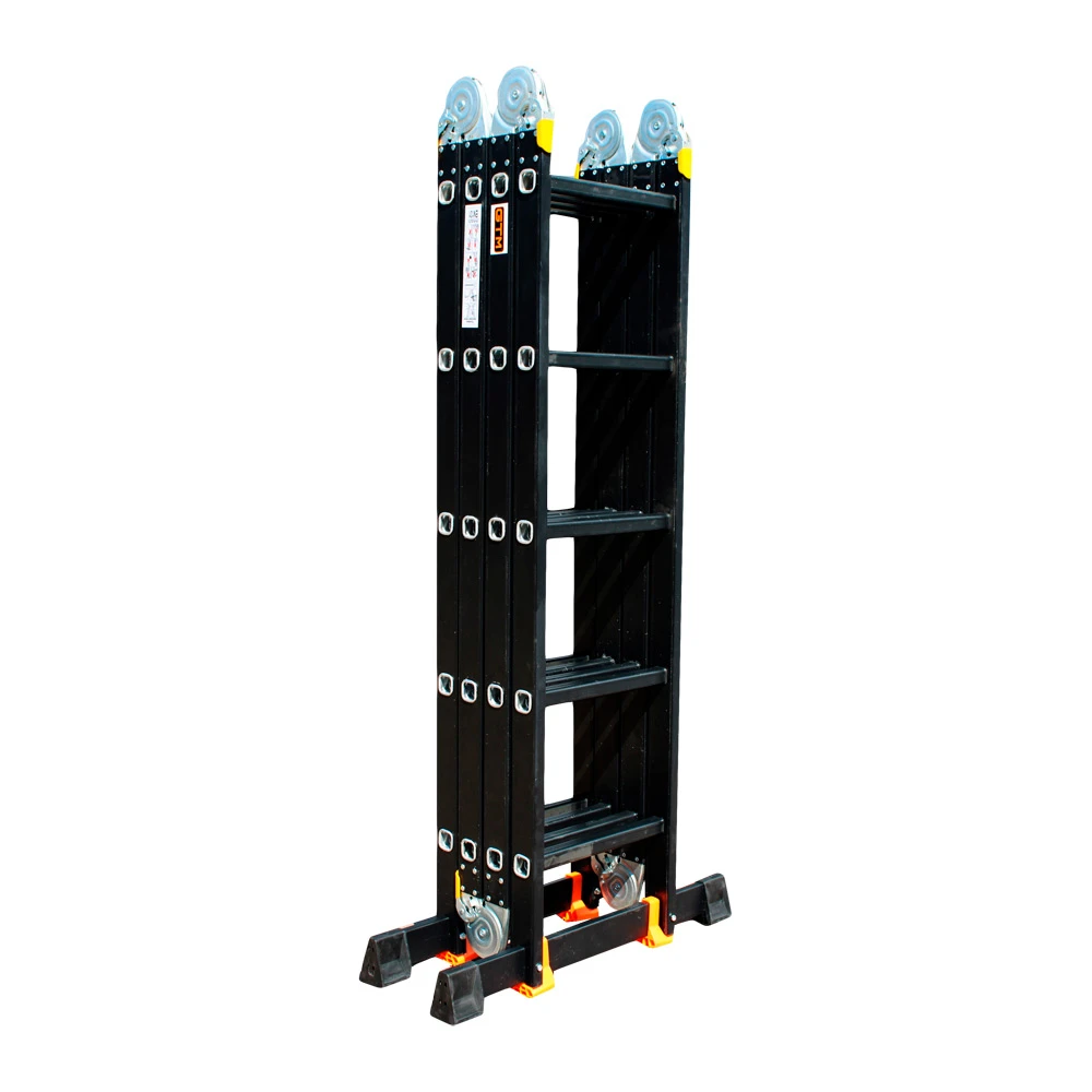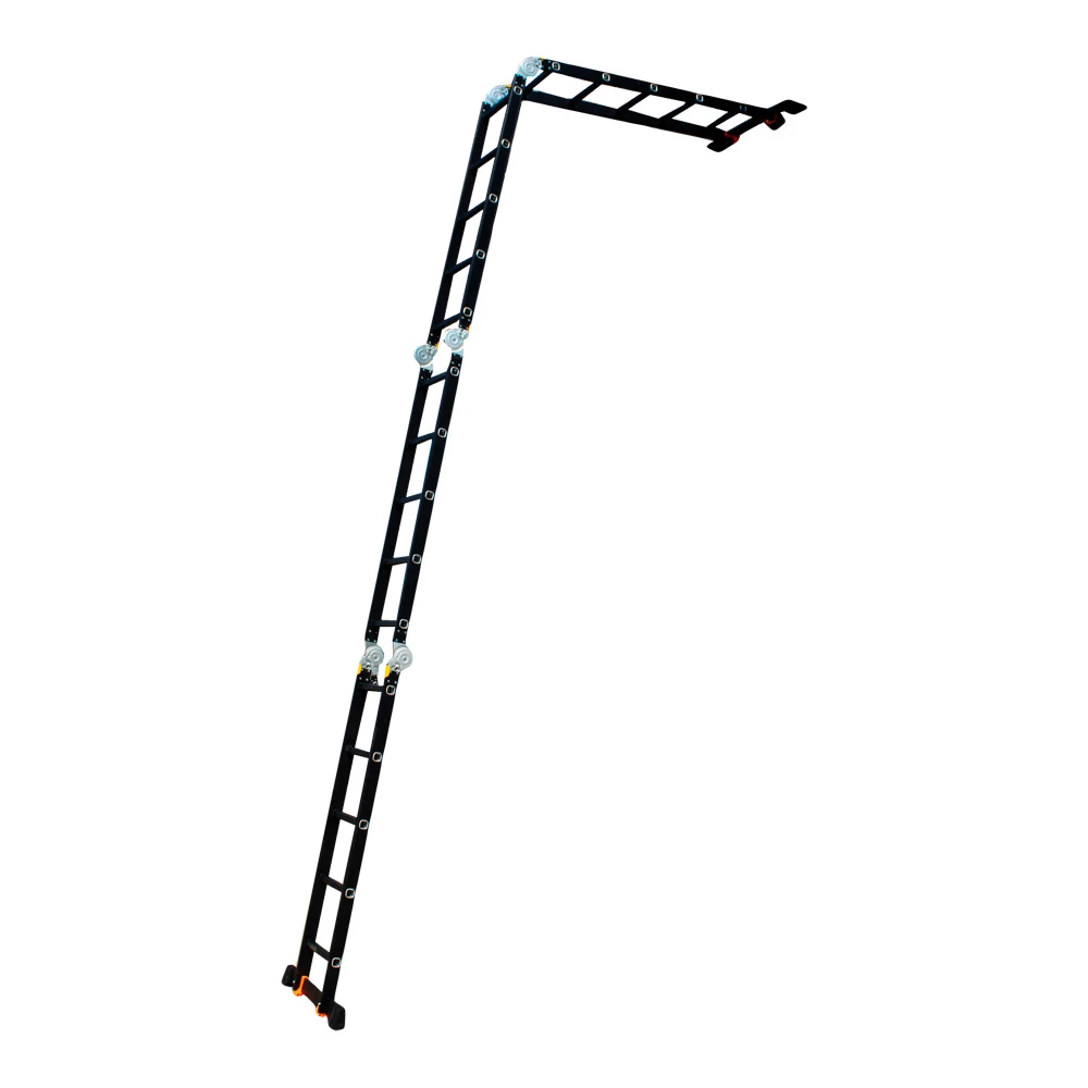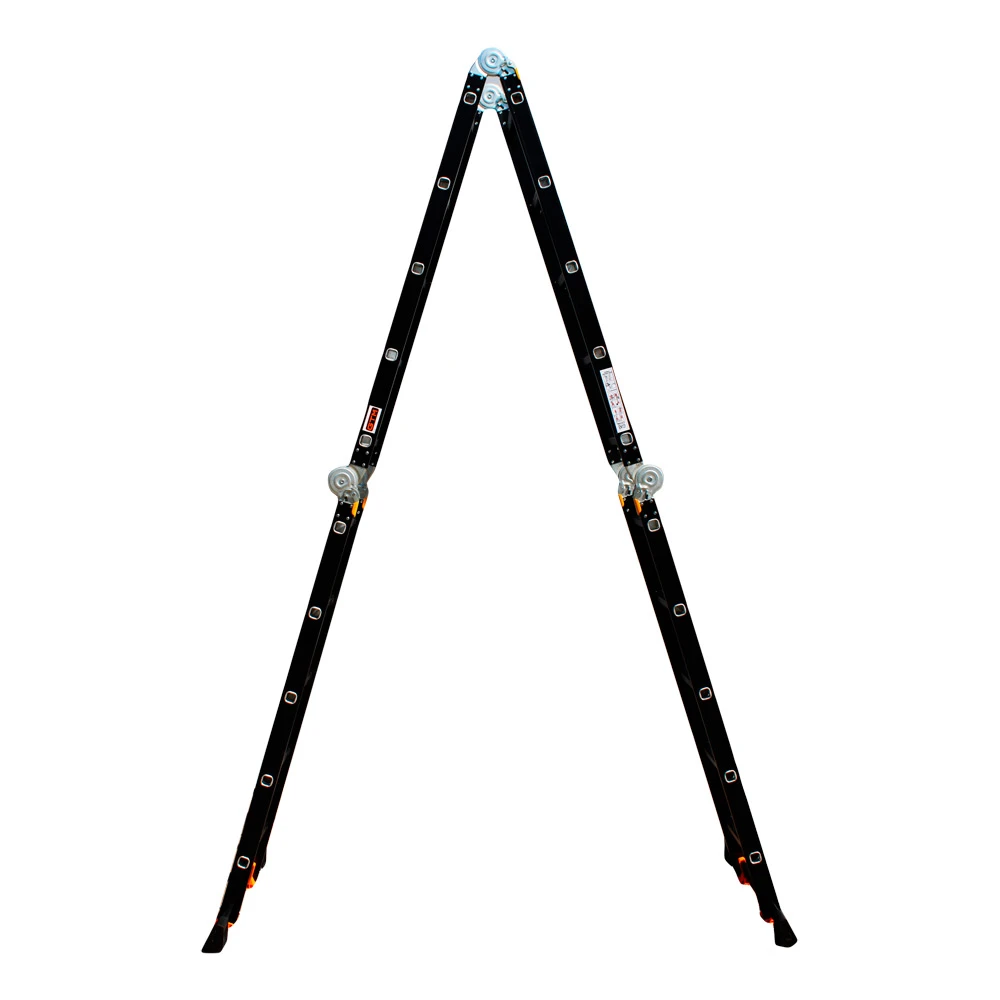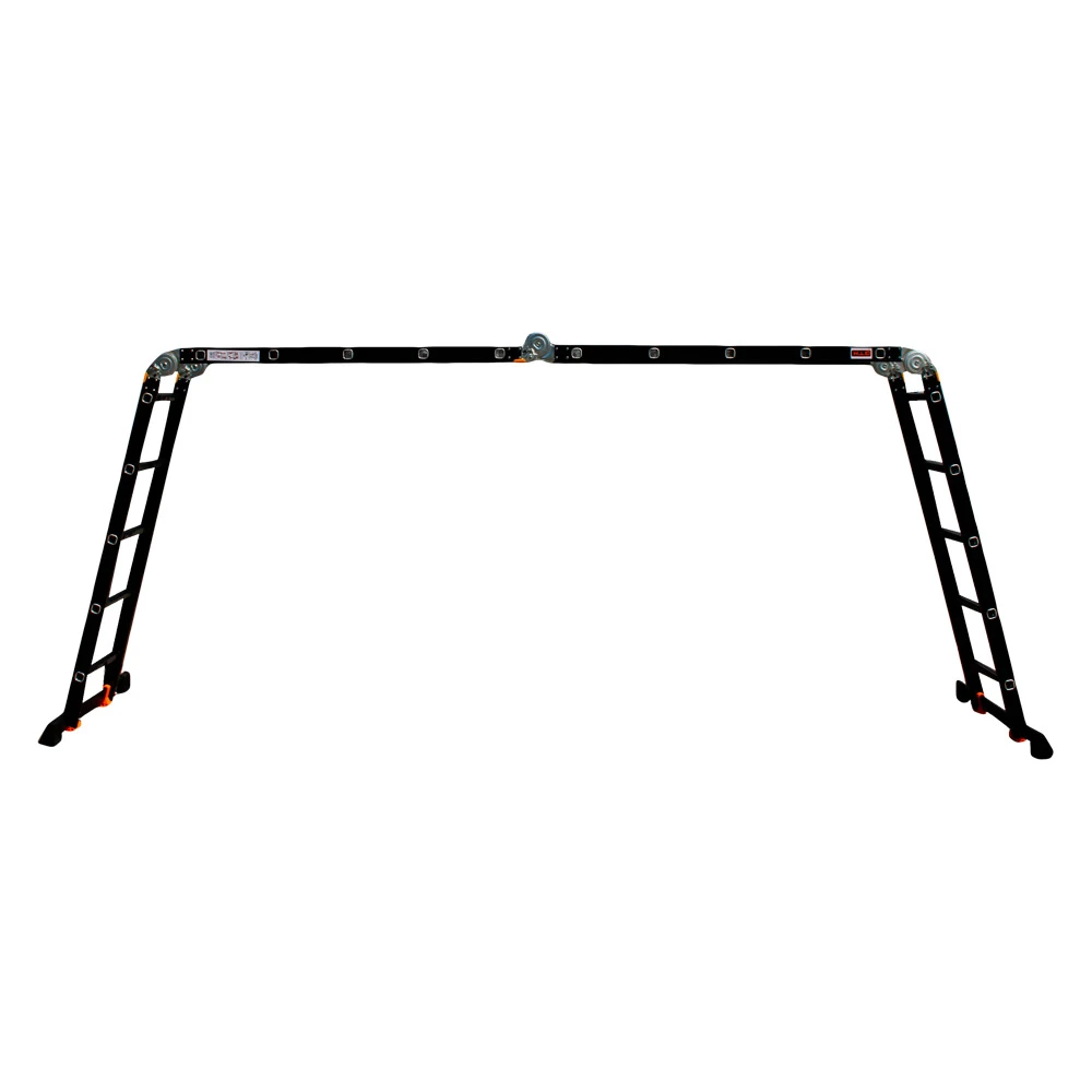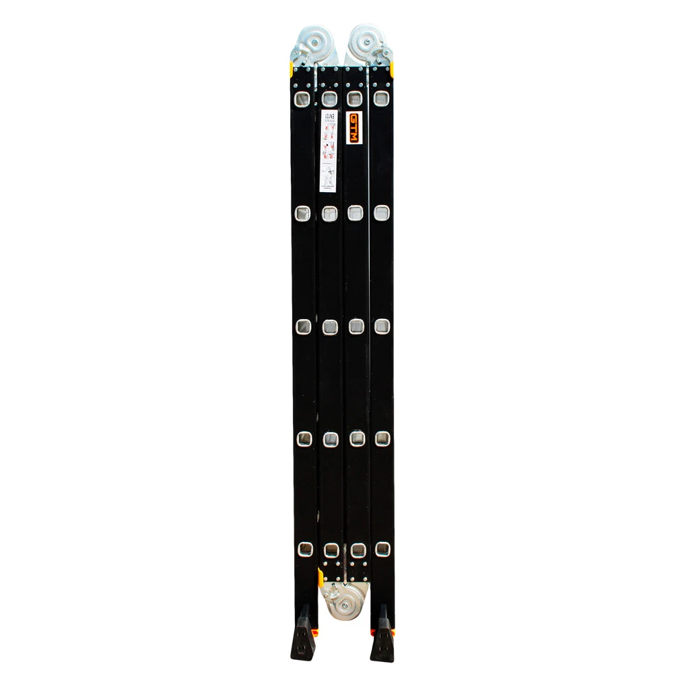 GTM KMP405A - легка драбина-трансформер підвищеної міцності, яка призначається для постійного промислового і побутового використання. Профіль виготовлений з авіаційного алюмінію, має змінну товщину стінки і додатково посилений ребрами жорсткості. Для додаткової стійкості до пошкоджень корпус пофарбований в чорний колір методом електрофорезу. Міцні шарніри і замки надійно фіксують сходи в будь-який з обраних форм. Завдяки такій конструкції трансформер GTM KMP405A здатний витримати без деформації навантаження в 150 кг.