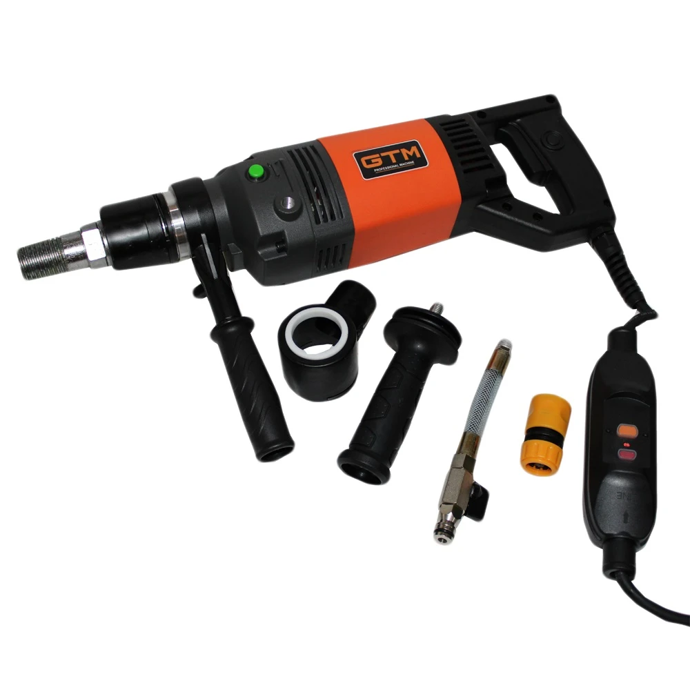 GTM OND-916PD-G - професійне обладнання для проведення будівельних робіт Використовується для прокладання комунікацій, електропроводки та вентиляції. Має вбудований двигун з потужністю 2300 Вт, що дозволяє видати до 1700 об/хв. Може використовуватися як для свердління з підведенням води, так і для свердління в режимі з мікроударом. Максимальний діаметр свердління в м'яких матеріалах – до 160 мм, у бетоні та залізобетоні – до 102 см.