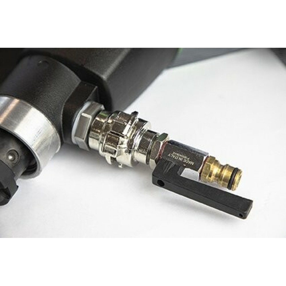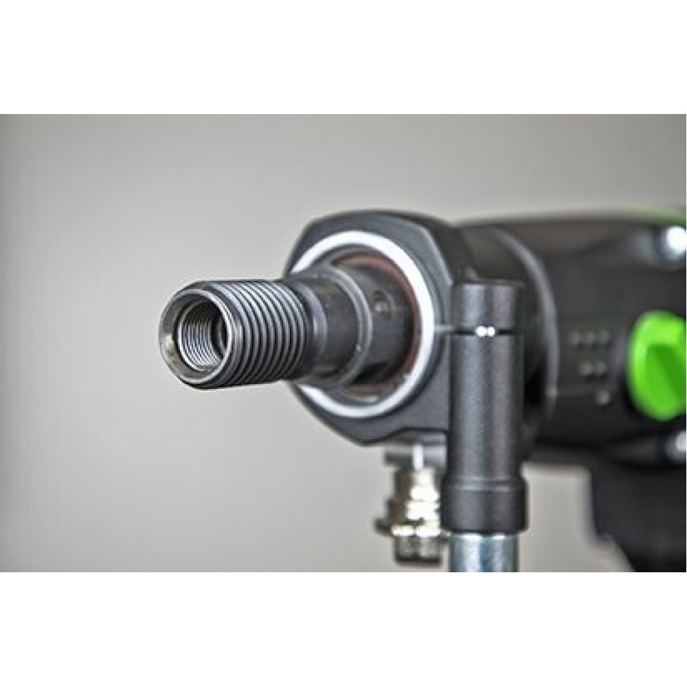 Универсальность модели заключается в изготовлении отверстий «насухо» либо с подачей воды в область реза. Орошение участка поддерживает безопасную температуру, осаживает пыль, предотвращая ее вдыхание человеком и засорение ключевых узлов.