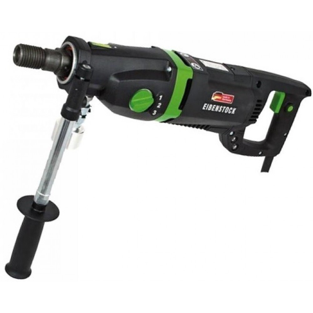 Дрель для сухого бурения и бурения с водой Eibenstock ETN 162/3P является профессиональным инструментом, который может использоваться не только в ручном режиме, но и устанавливаться в специальные стойки, позволяющие обеспечить высокую точность осуществляемых работ. Данная дрель может оснащаться коронками диаметром от 12 до 162 мм. Также она оборудована удобным креплением для подачи воды или установки пылесборника. Электронной системы управления, которой оснащена дрель ETN 162/3P обеспечивает плавный пуск двигателя, защиту от возможного перегрева, чрезмерных нагрузок и заклинивания. Благодаря наличию редуктора, а также двигателя мощностью 2200Вт данная модель используется для выполнения широкого спектра работ.