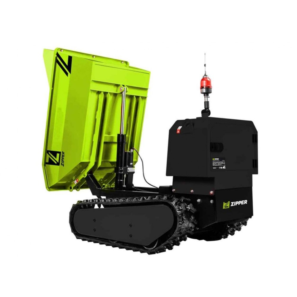Думпер гусеничний, міні самоскид ZIPPER ZI-ED400 - це компактна та функціональна техніка для переміщення сипучих матеріалів вагою до 400 кг. 2 електродвигуни потужністю 800 Вт кожен та ланцюговий привід дозволяють ефективно виконувати більшість стандартних операцій. Радіоуправління за допомогою пульта дистанційного керування і функція гідравлічного перекидання кузова дозволяють ефективно працювати у кар’єрах, шахтах й інших небезпечних умовах без ризику для оператора.