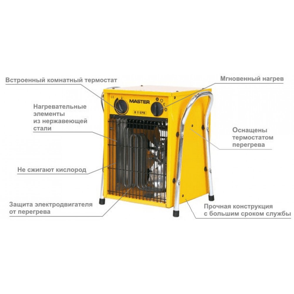 Электрический нагреватель Master B 5 ECA используется в разных сферах - с его помощью обогреваются бытовые помещения, например, дача, частный дом или квартира. Также его применяют для ускорения высыхания отделочных материалов во время ремонта и обогрева офисов. Характеризуется тремя рабочими режимами, два из которых отвечают за подачу тепла под влиянием мощности электродвигателя. Если отключить нагревательный элемент, обеспечивается обычная вентиляция.