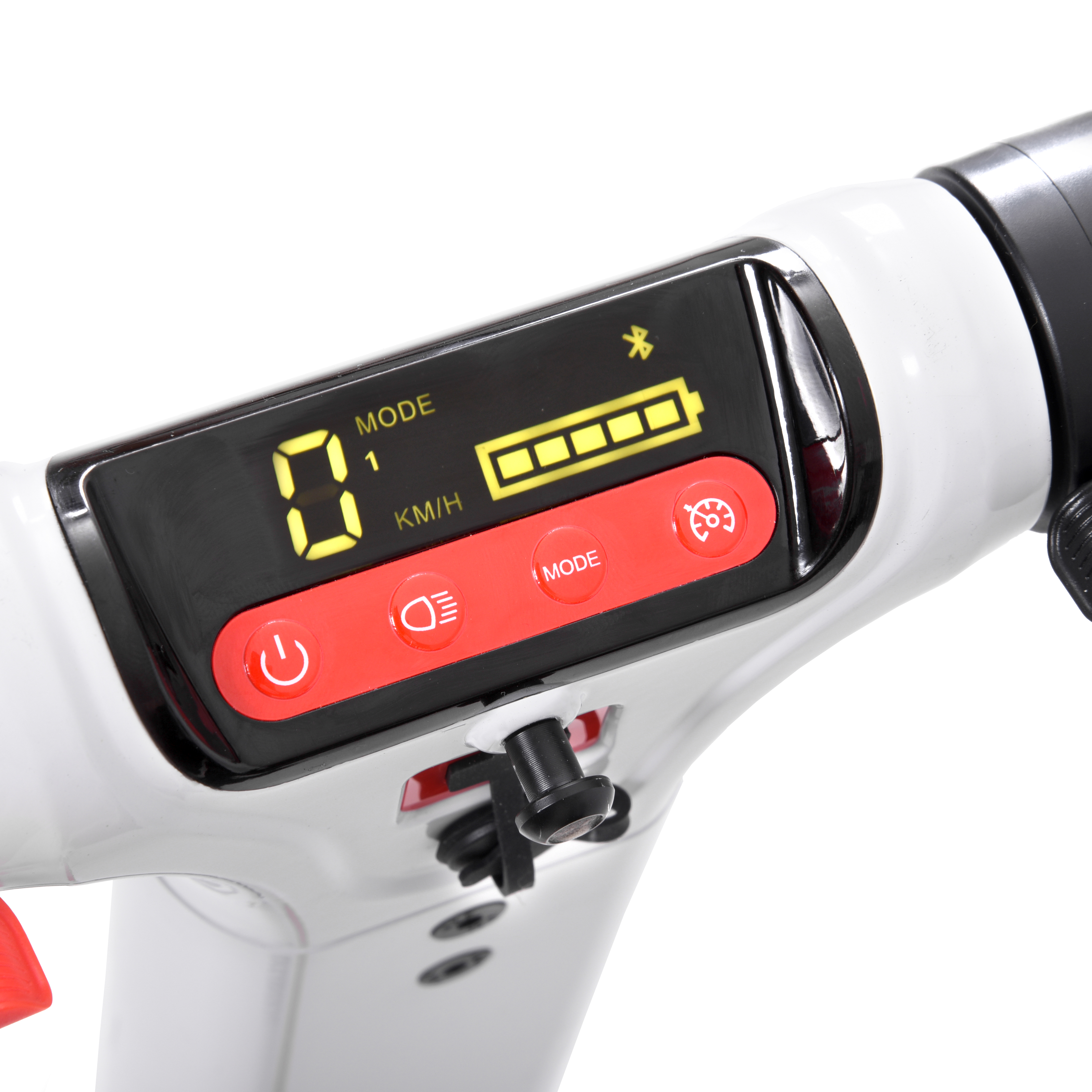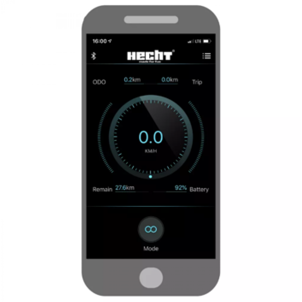 Між ручками керма знаходиться панель управління з тахометром. Він показує поточну швидкість, стан батареї, включені індикатори або активність Bluetooth. Використовуючи додаток, доступні для Android або Apple, можна відстежувати, наприклад, швидкість, пройдену відстань, стан акумулятора або очікуваний заряд акумулятора телефону. При цьому максимальну швидкість самоката можна встановити прямо в телефоні.