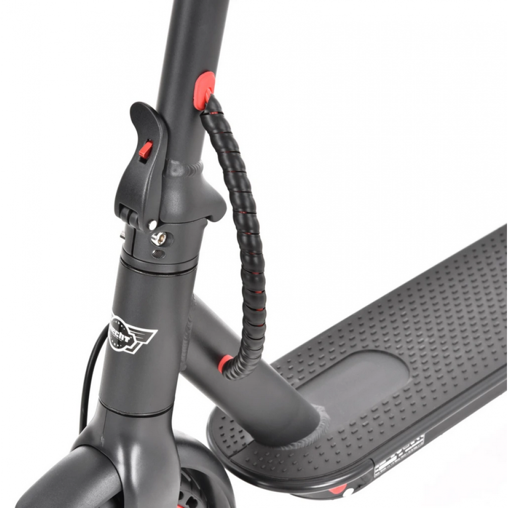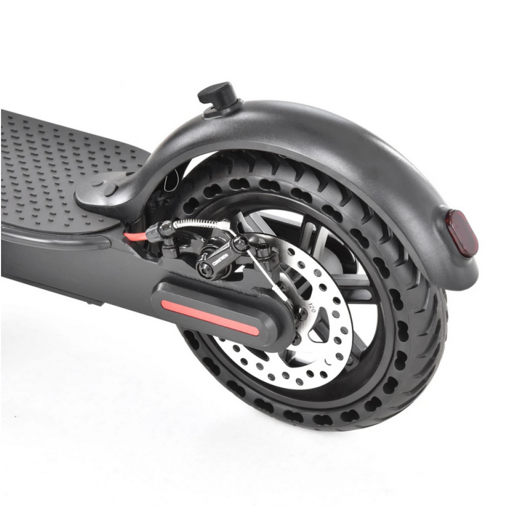 Акумуляторний скутер із запасом ходу до 25 км на одному заряді. Самокат має легку алюмінієву раму. Тому його можна легко переносити в автобус, метро, трамвай чи потяг. Таким чином, він може стати ідеальним транспортним засобом у місті. Живиться від літієвої батареї 36 В / 7,5 Ач. Час зарядки акумулятора 3-5 годин. Максимальна вага 100 кг. Звичайно, на запас ходу впливає вага водія, рельєф і стиль водіння.