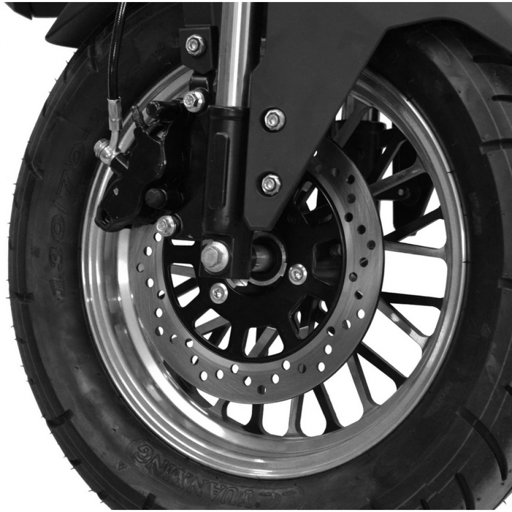 Електромотоцикл із безщітковим двигуном потужністю 2000 Вт, допущений до дорожнього руху. Максимальна швидкість обмежена 45 км/год, тому ним можуть керувати особи віком від 15 років, які мають водійські права групи АМ. Двигун живиться від високоякісної літієвої батареї 72 В / 20 Ач, час зарядки розрядженої батареї становить приблизно 4 години. Повністю заряджений акумулятор має запас ходу до 65 км. Мотоцикл двомісний, максимальне навантаження 259 кг. Обладнаний дисковими гальмами, колеса взуті в безкамерні шини 130/70-12". Зі зростанням цін на паливо це також може бути хорошою альтернативою для регулярних поїздок на роботу.