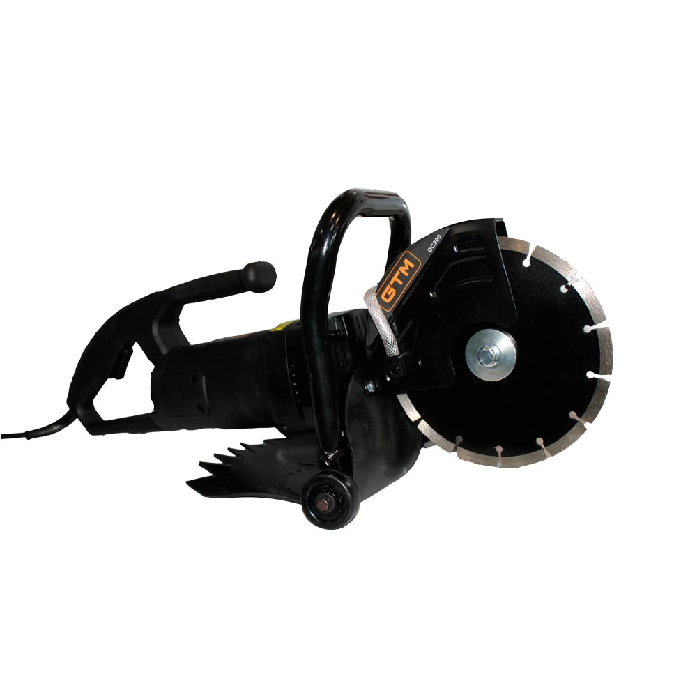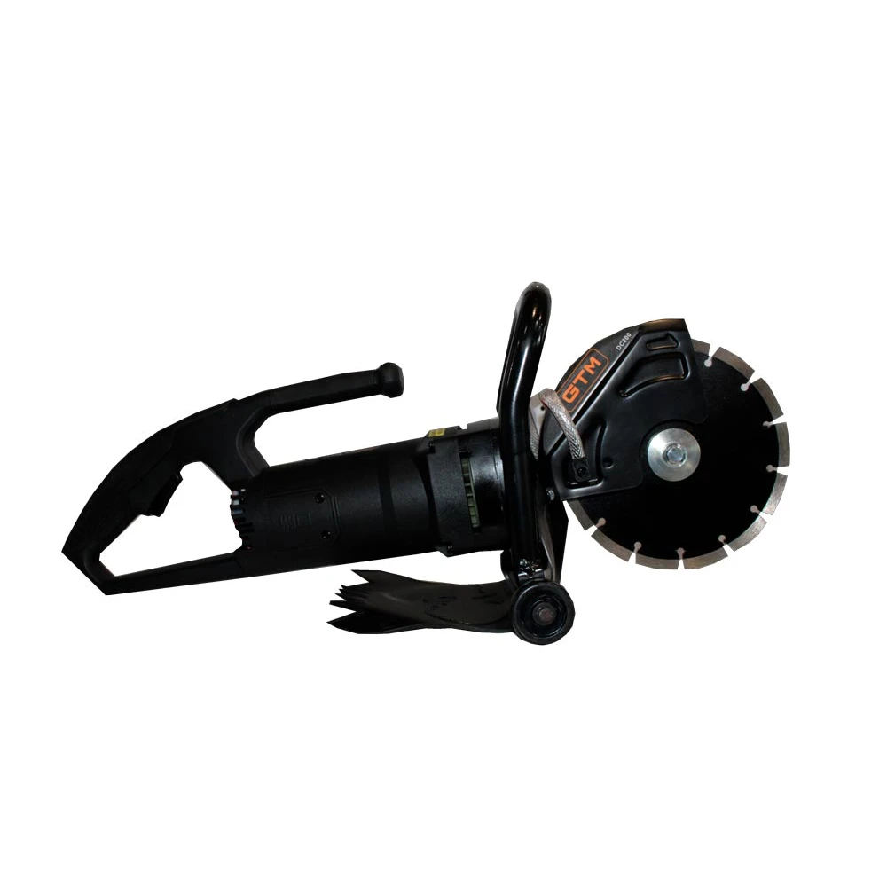 Електроріз GTM DC200 призначається для різання цегляних, бетонних, залізобетонних та інших конструкцій за допомогою алмазного диска. На інструмент встановлюється стандартний алмазний круг діаметром 200 мм і з посадковим отвором 25,4 мм Глибина різу досягає 117 мм. В електроріз встановлений якісний двигун потужністю 1800 Вт, завдяки чому на холостому ходу швидкість обертання диска досягає 6000 об/хв. Ротор і статор двигуна додатково броньовані поліамідної ниткою, що дає захист від пилу при використанні і значно підвищує робочий ресурс. Щітки в двигуні при зносі можна замінити без необхідності повного розбору корпусу. Для роботи з алмазними дисками, вимагають при роботі водяне охолодження, в комплекті йде мининасос і трубка для подачі води.