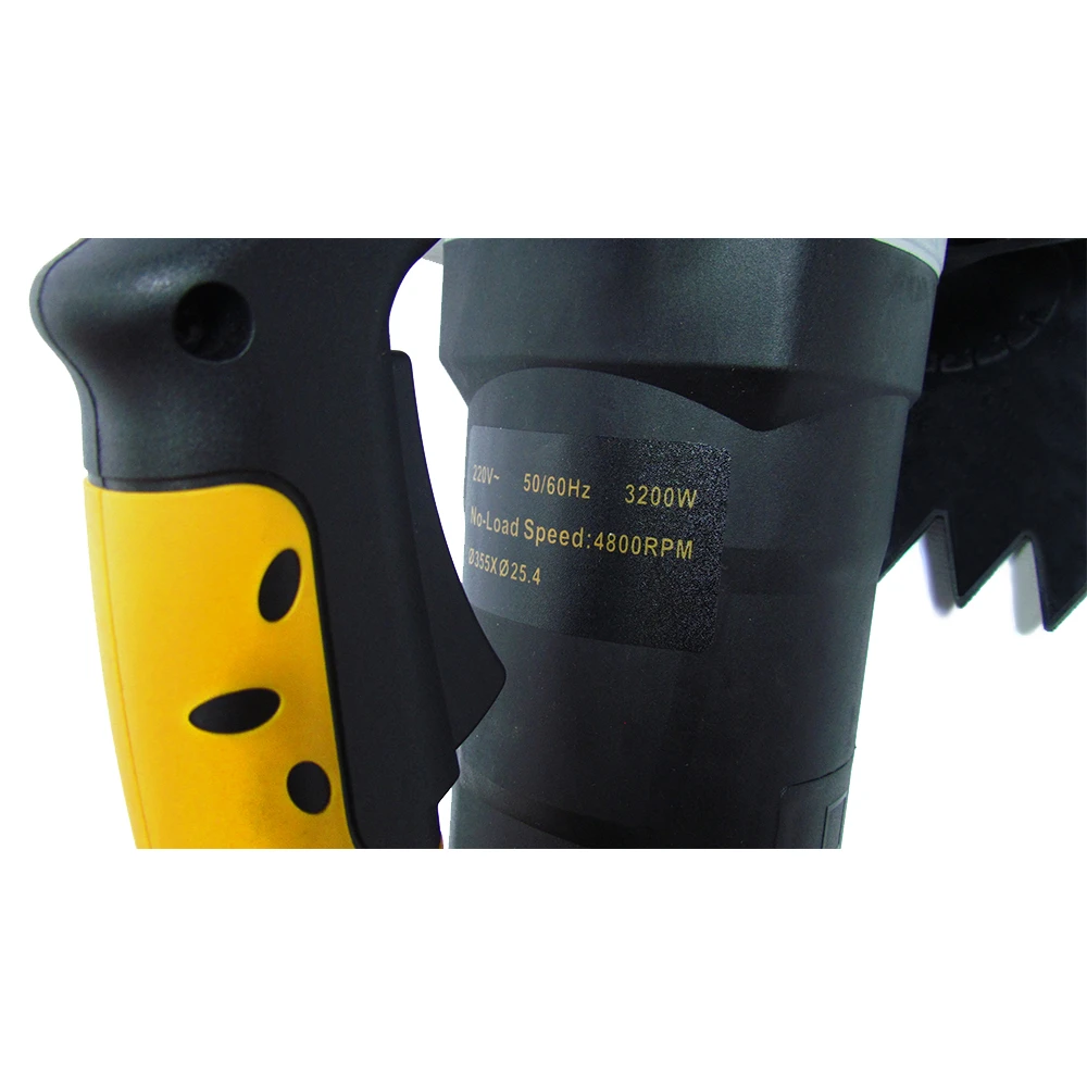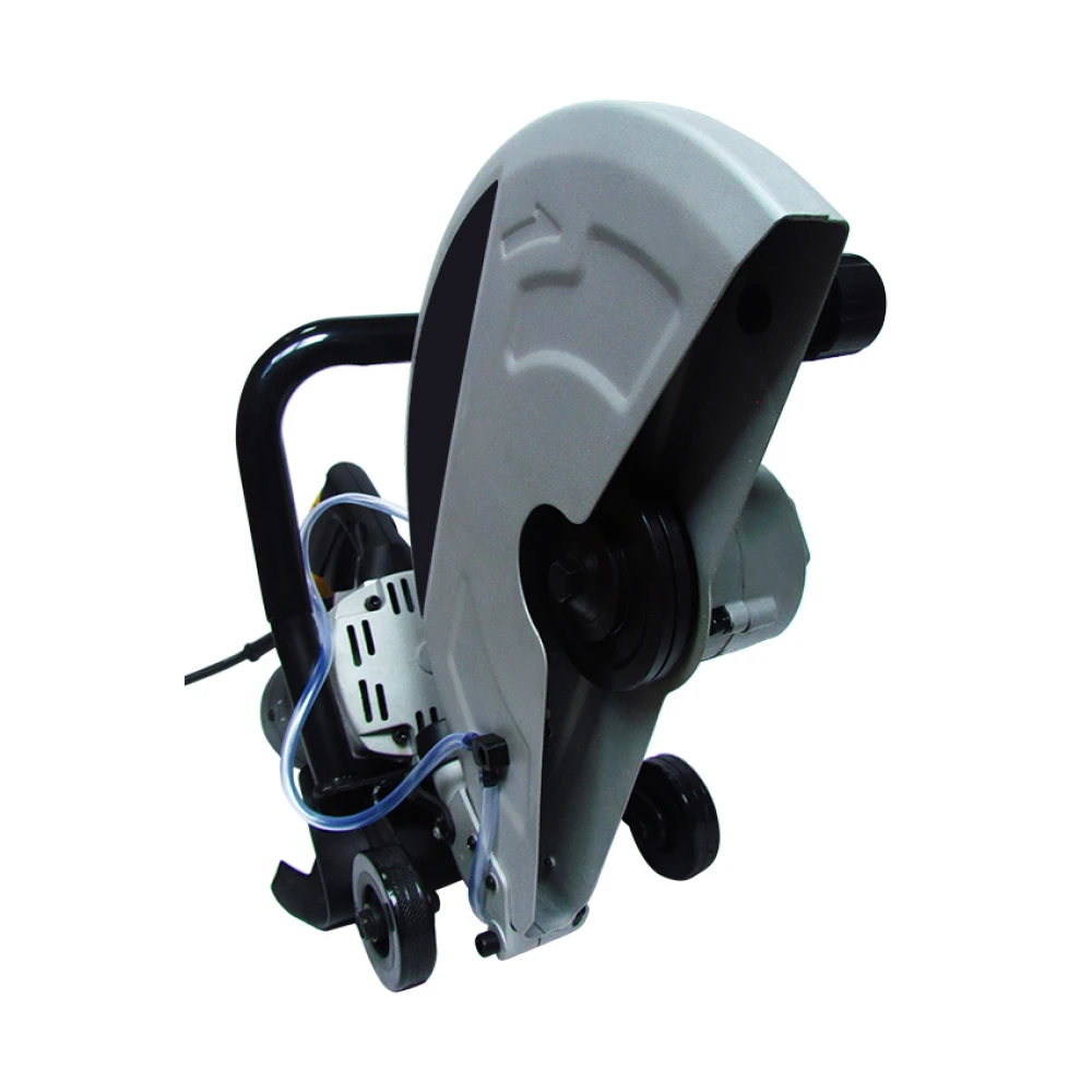 Електроріз GTM DC350 призначається для різання цегляних, бетонних, залізобетонних та інших конструкцій за допомогою алмазного диска. На інструмент встановлюється стандартний алмазний круг діаметром 355 мм і з посадковим отвором 25,4 мм Глибина різу регулюється спеціальною планкою, яку можна встановити на корпус, і досягає 117 мм. В електроріз встановлений якісний двигун потужністю 2800 Вт, завдяки чому на холостому ходу швидкість обертання диска досягає 4800 об/хв. Ротор і статор двигуна додатково броньовані поліамідної ниткою, що дає захист від пилу при використанні і значно підвищує робочий ресурс. Щітки в двигуні при зносі можна замінити без необхідності повного розбору корпусу. Для роботи з алмазними дисками, вимагають при роботі водяне охолодження, в комплекті йде мининасос потужністю 30 Вт з продуктивністю 8 л/хв і трубка для подачі води. Для кіл, які ріжуть без подачі води, передбачений адаптер для підключення будівельного пилососа.