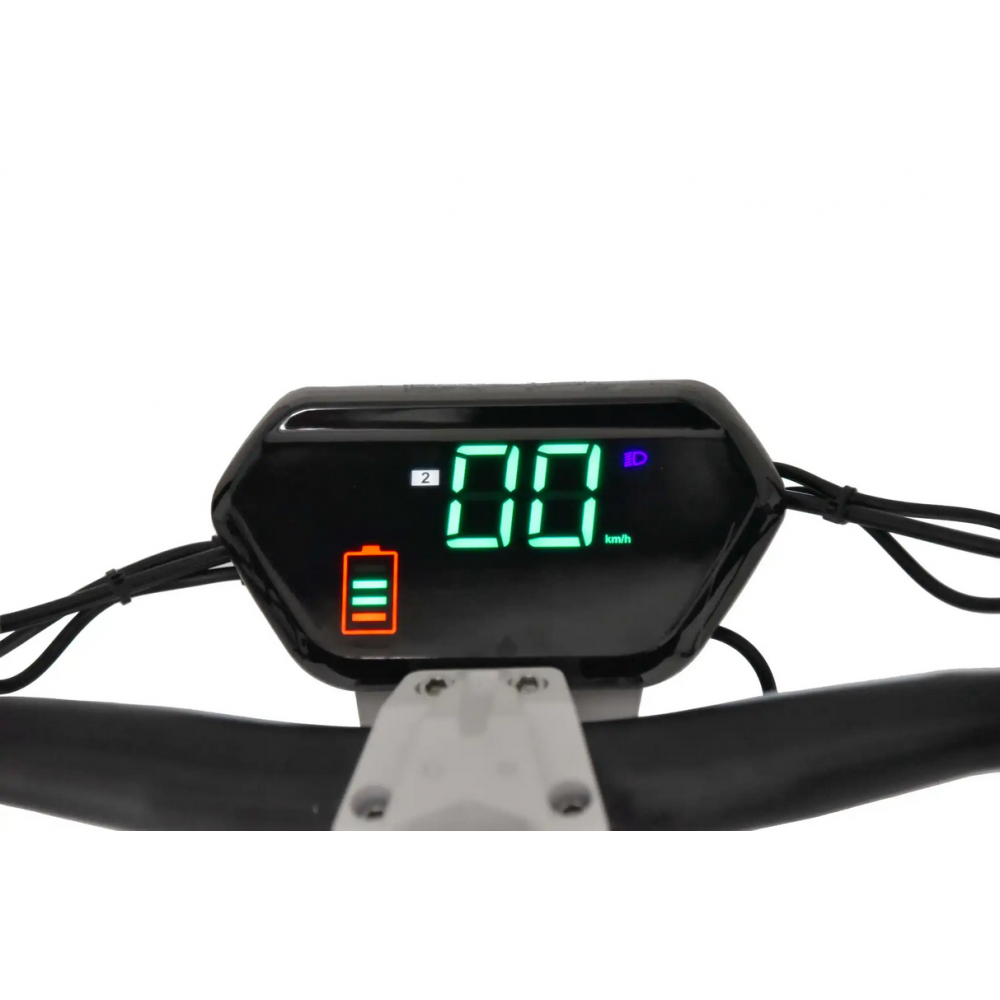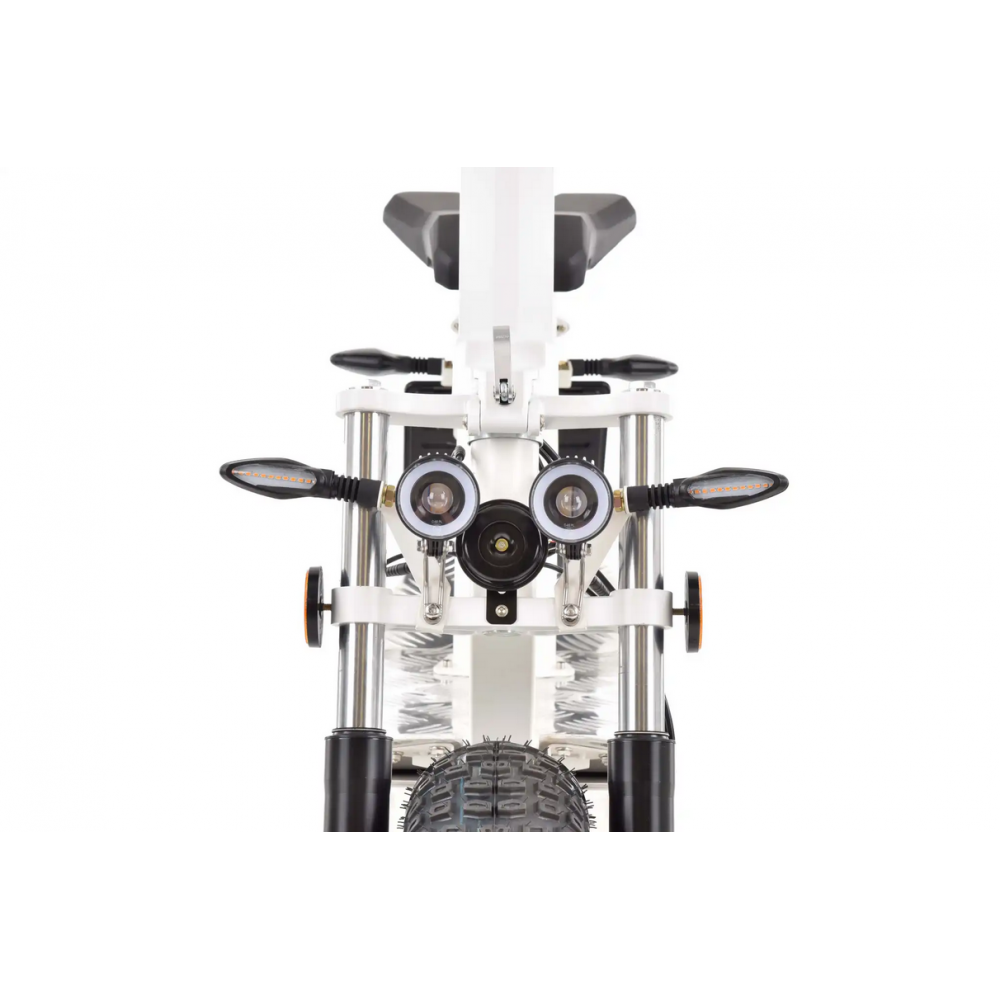Електросамокат HECHT GRIMIS WHITE – потужний, стильний та маневрений транспортний засіб для міських переміщень. З безщітковим двигуном потужністю 3000 Вт, максимальною швидкістю 45 км/год і запасом ходу до 50 км на одному заряді, він ідеально підходить для активного способу життя в місті. Сучасний дизайн, оснащений широкими шинами для комфортної їзди по будь-яким дорогам і дисковими гальмами для безпечного гальмування. Повна світлодіодна підсвітка та інформативна РК-панель на кермі роблять його надійним та зручним засобом пересування в місті. Основна перевага електросамоката – дешева експлуатація з мінімальним обслуговуванням.