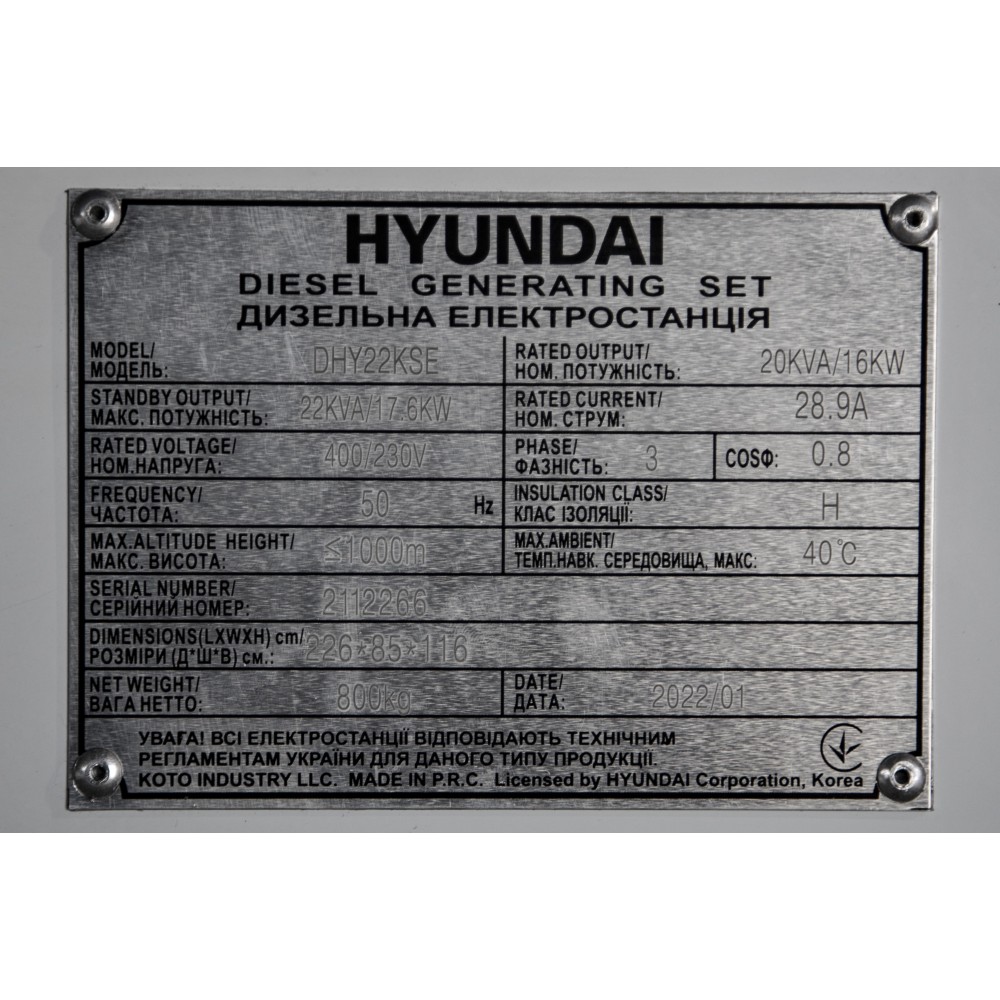 Електростанція дизельна Hyundai DHY 22KSE+ATS 60A