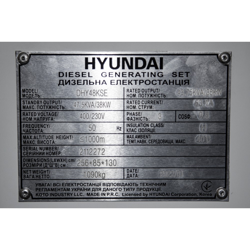 Усі дизельні електростанції HYUNDAI постачаються в наступній комплектації: