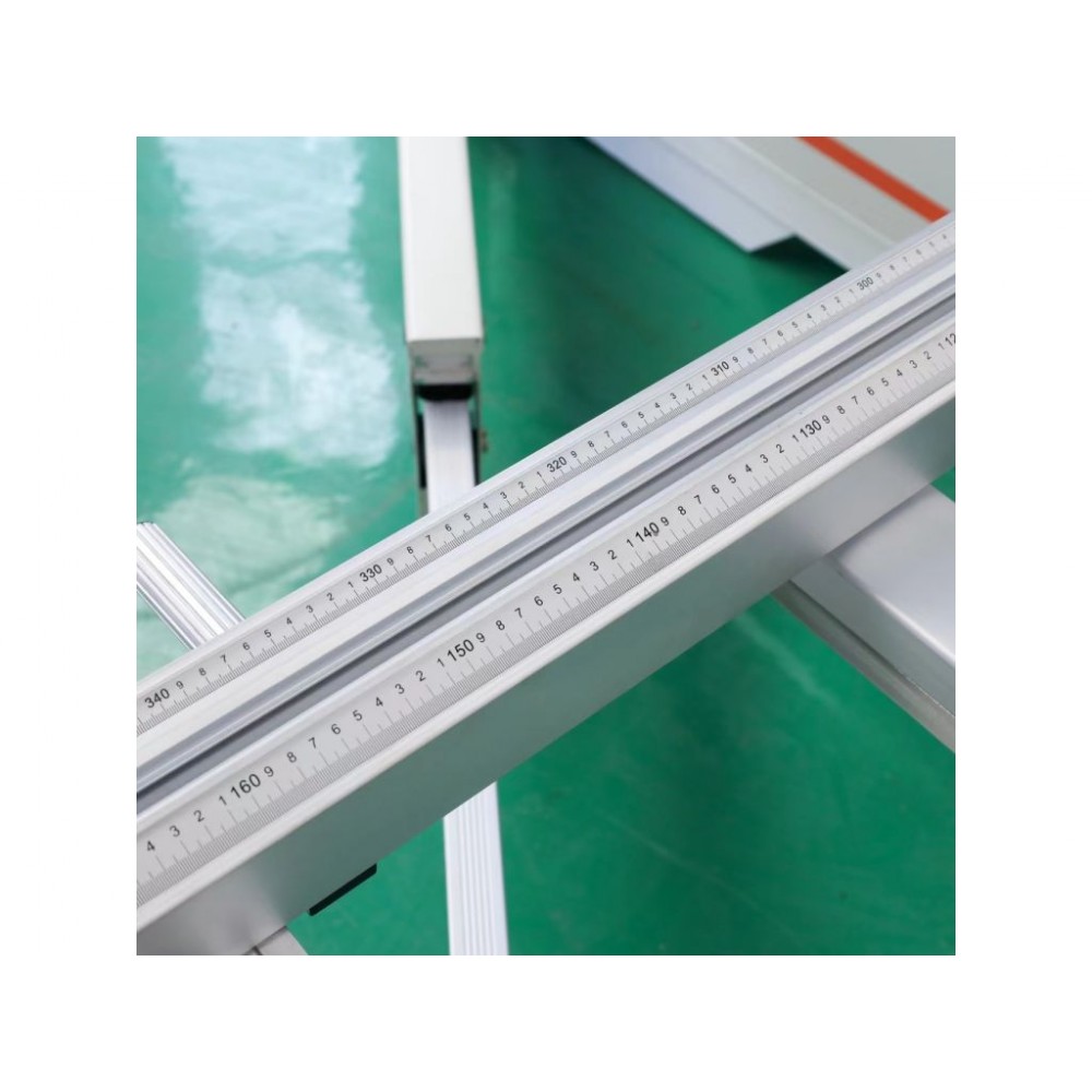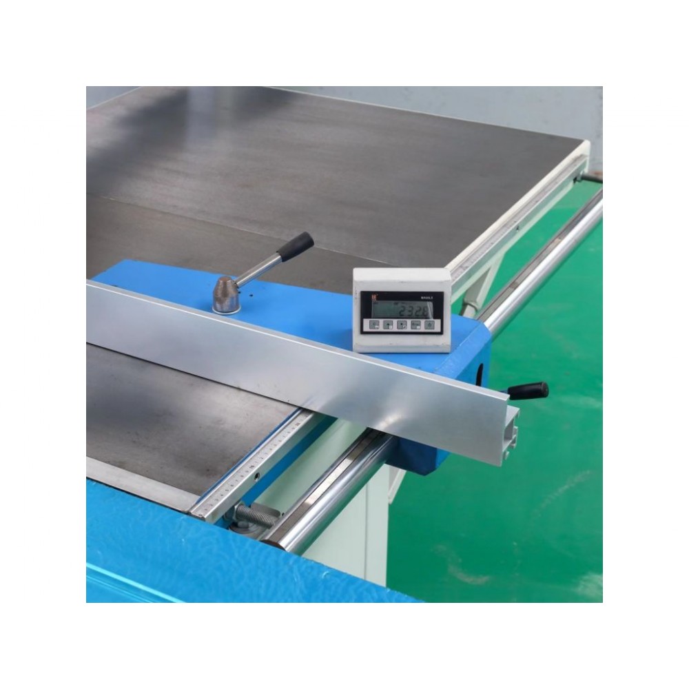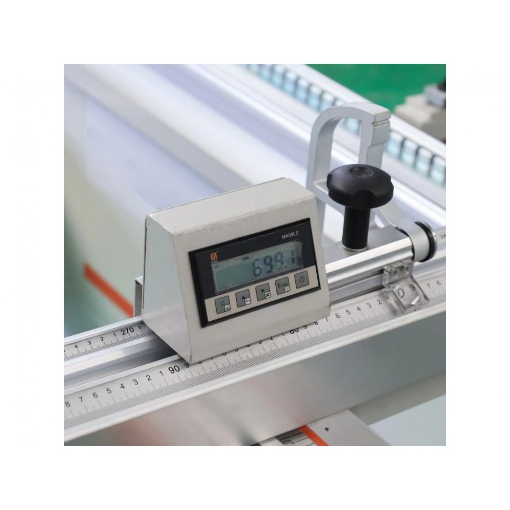 Один із прапорцевих упорів на поперечній лінійці оснащений блоком цифрової індикації, що забезпечує високу точність при установці розмірів розкрою плитних матеріалів. Роздільна здатність 0,1 мм.