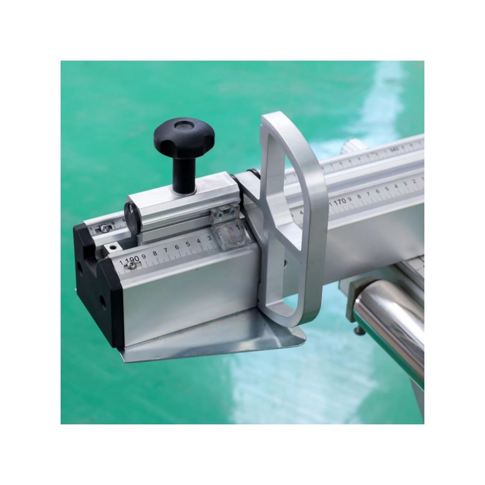 Точне ручне налаштування полегшує точну установку поздовжнього упору. Регулювальний гвинт забезпечує юстування упору з точністю до міліметра. Виставлений