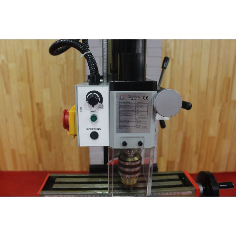 Верстат Holzmann BF 16V призначений для виконання широкого спектра операцій, виконуваних на вертикальному фрезерному верстаті: фрезерування, свердління, розгортання і розточування отворів. Поздовжній хід столу в даному верстаті становить 275-640 мм. Зверху колона закінчується напрямними.
