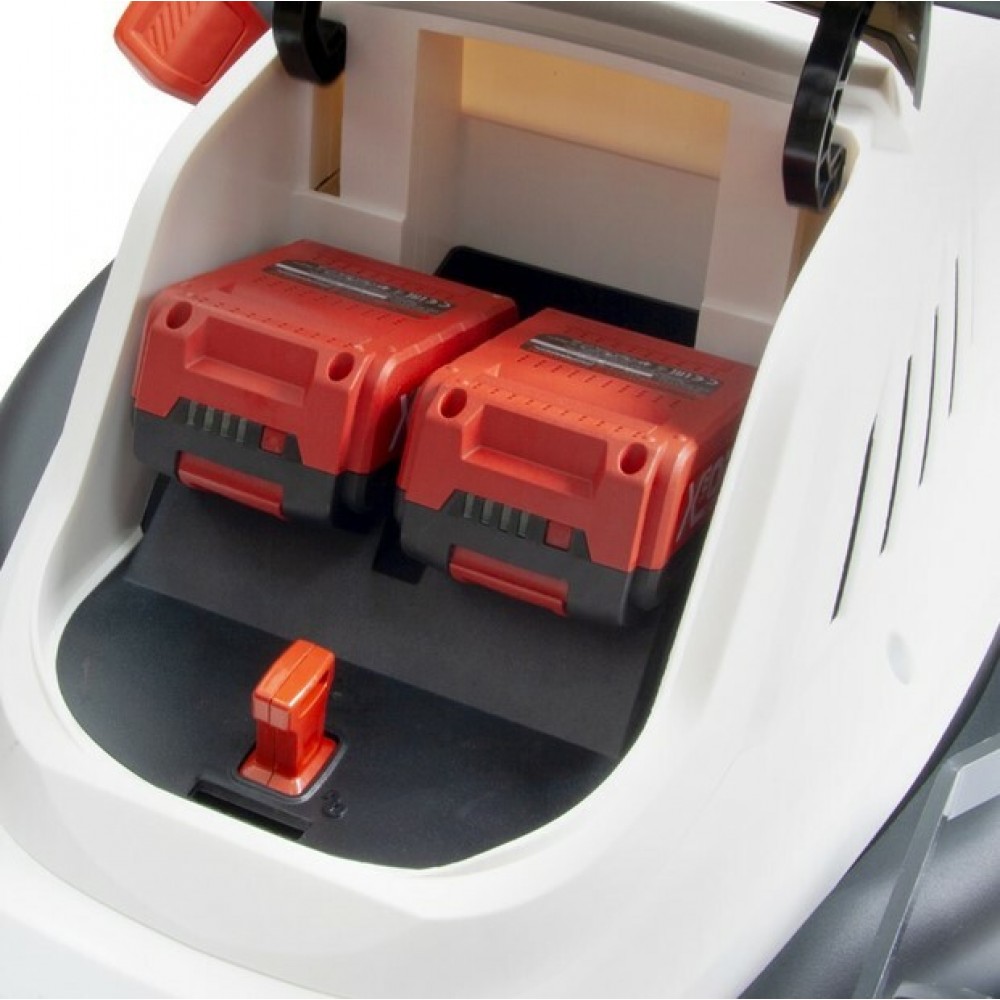 - Газонокосарка сумісна з акумуляторами різної ємності (2, 4 і 8 Ач), що дає змогу підібрати оптимальний варіант під конкретні потреби. У комплекті акумуляторів немає.