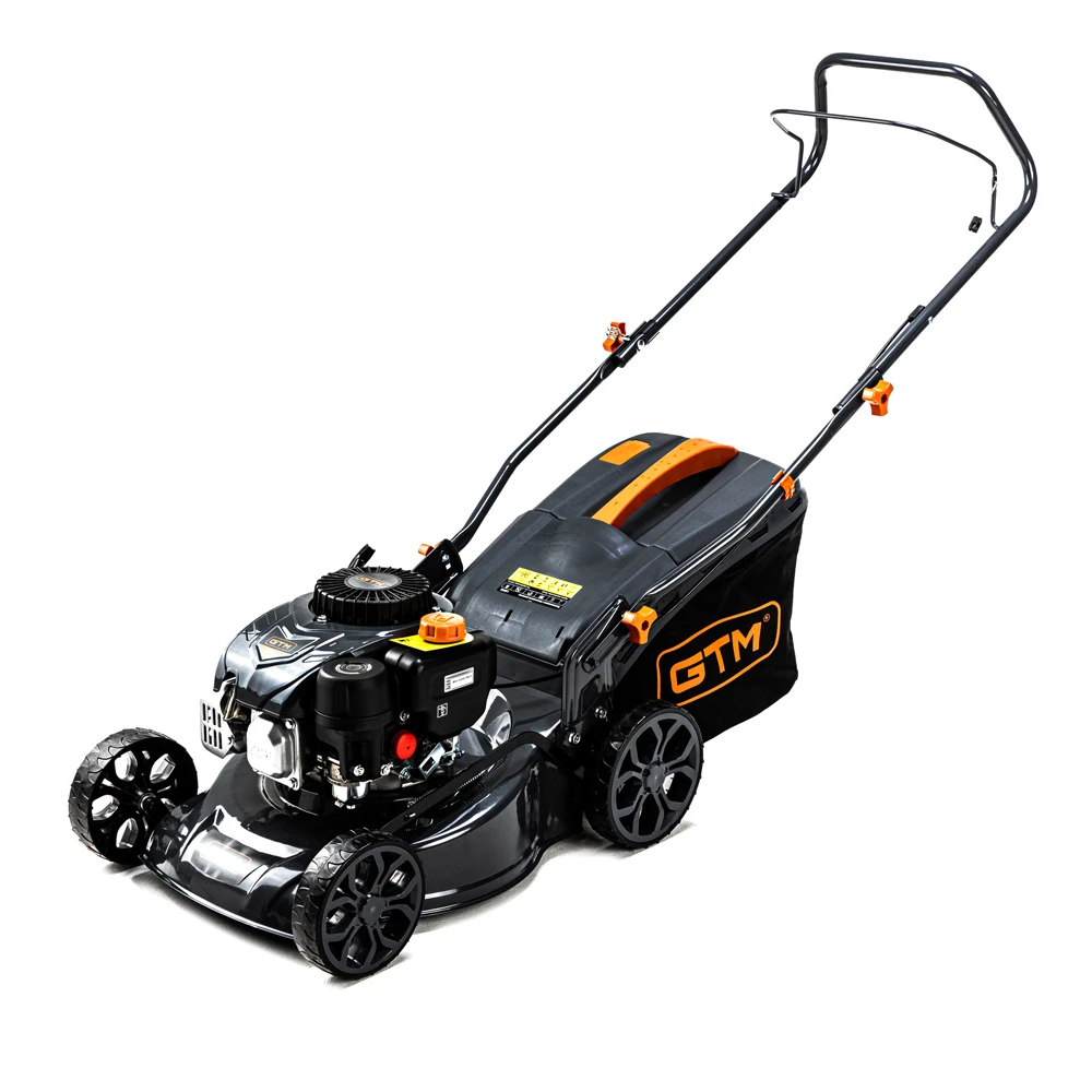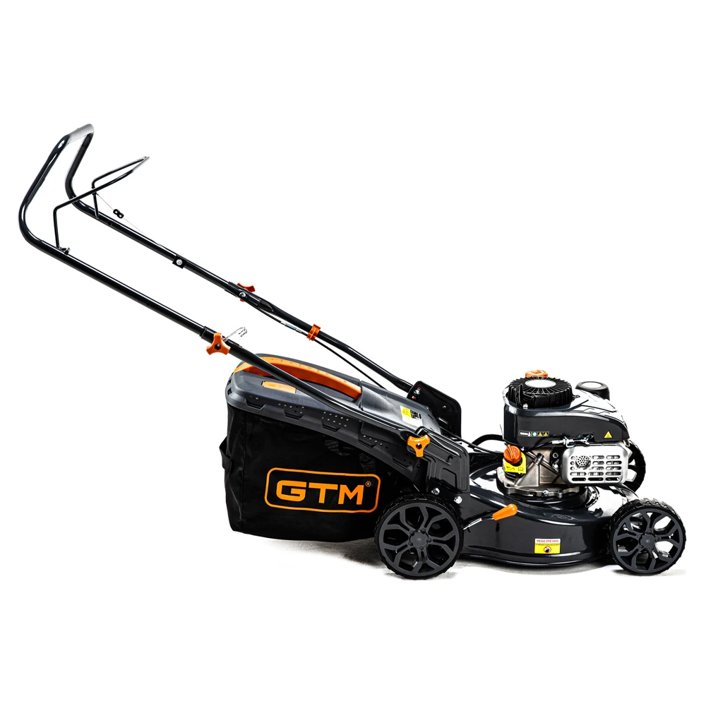 GTM LM42- це зручна, проста у використанні газонокосарка для газонів невеликих розмірів. Сталева дека і потужний двигун забезпечують високу надійність косарки при тривалій роботі. Має задній викид трави, зручне перенесення мішка за допомогою ручки та легке регулювання висоти зрізу. Ця модифікація не має додаткового приводу на колеса.