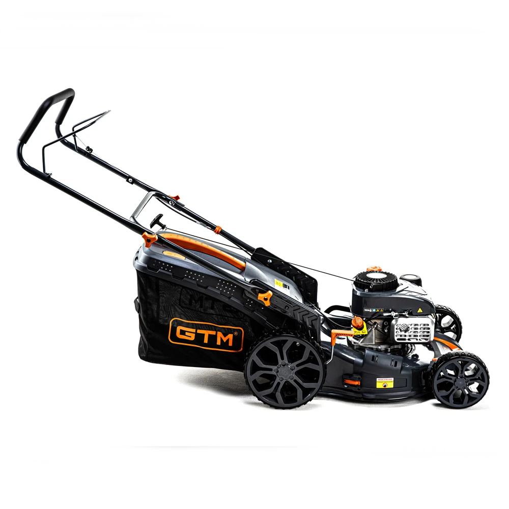 GTM LM48- це зручна, проста у використанні газонокосарка для газонів середніх розмірів. Сталева дека і потужний двигун забезпечують високу надійність косарки при тривалій роботі. Має задній викид трави, зручне перенесення мішка за допомогою ручки та легке регулювання висоти зрізу. Ця модифікація не має додаткового приводу на колеса.