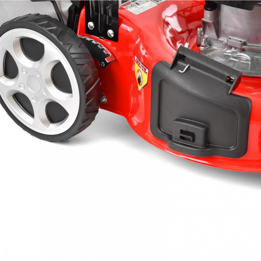 - Функція 5 в 1: Косіння, бічний викид, задній викид, мульчування, збір у кошик.