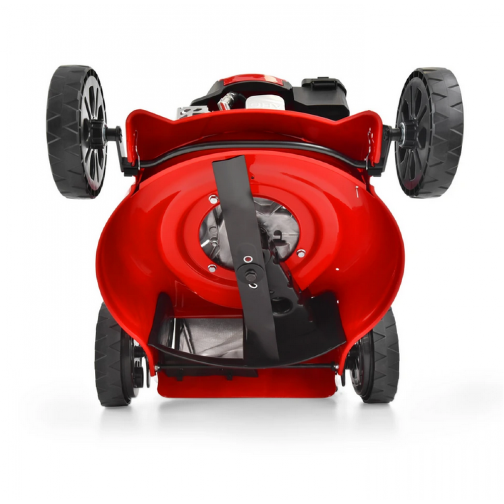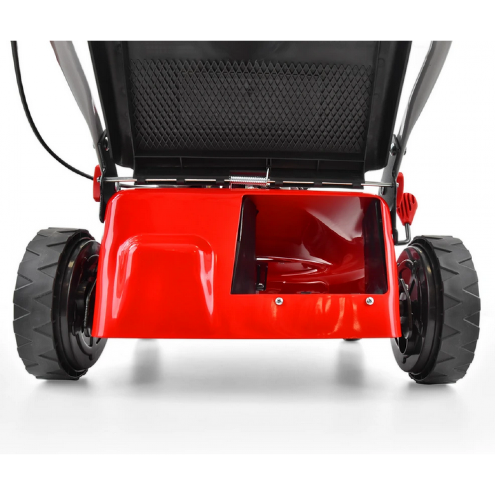 Косарка має великий травозбірник ємністю 60 літрів і може легко пересуватися по газону за допомогою шарікоподшипникових коліс. При необхідності ви можете встановити висоту зрізу за допомогою одного важеля у восьми рівнях, від 25 до 75 мм.