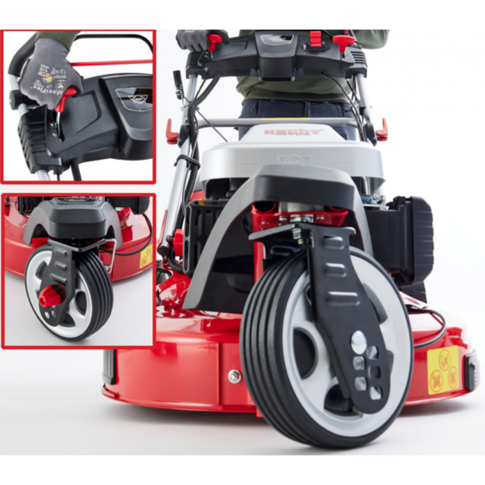 Бензинова газонокосарка HECHT 5563 SXE 5 в 1 — це добре обладнана машина, розроблена в основному для нерівних площ із великою кількістю перешкод. Переднє колесо дозволяє легко керувати та об'їжджати перешкоди, такі як різні клумби, кущі, архітектурні елементи тощо. Якісний бензиновий двигун HECHT OHV об'ємом 173 куб , який оснащений електричним стартером, що робить косарку придатною навіть для людей похилого віку та жінок. Електростартер живиться від акумулятора 12 В, який знаходиться в панелі на ручці косарки. Запуск здійснюється за допомогою кнопки на ручці. На відміну від 3-колісних колясок, які можуть бути нестійкими через високий центр ваги, газонокосарка в цій версії дуже стійка. С кошена трава збирається в текстильний кошик на 60 л, який оснащений аеродинамічним клапаном для легкої перевірки стану його наповнення. Висота підйому від 25 до 75 мм.