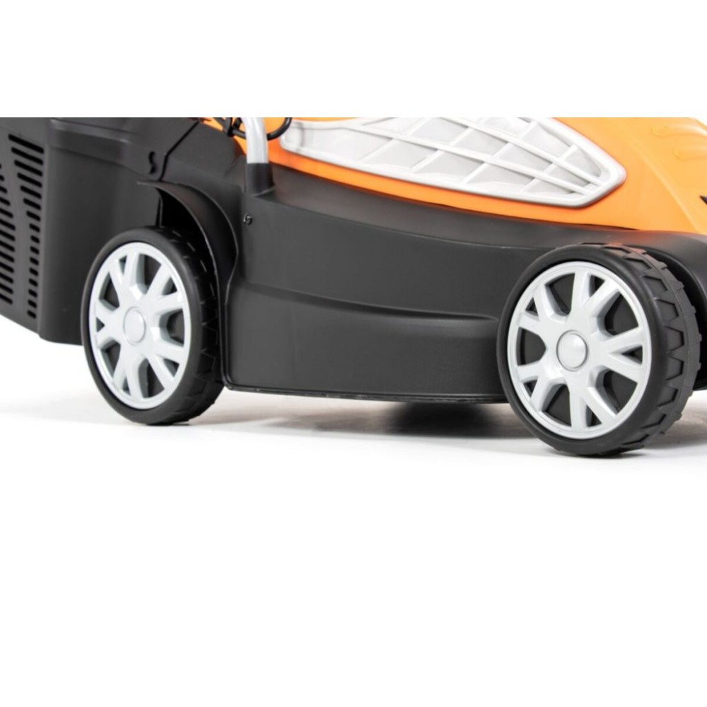 Газонокосарка електрична Handy KC1600A це модель, яка підходить не тільки для найменших садів біля приватних будинків, а й для ділянок середнього розміру. Це можливо завдяки двигуну потужністю 1600 Вт, що працює від мережі 230 В. Робоча ширина становить 38 см. Крім того, практичним є центральне регулювання висоти зрізу, що дозволяє встановлювати її в діапазоні від 25 до 65 мм. Практичний контейнер для обрізків має місткість до 45 літрів та індикатор заповнення, який сповіщає про необхідність його спорожнення. Ергономічна ручка та дуже міцні колеса забезпечують максимальний комфорт під час роботи, не турбуючись про те, що машина не витримає будь-яких ваших маневрів. Для вашої безпеки виробник також передбачив захист від перегріву.