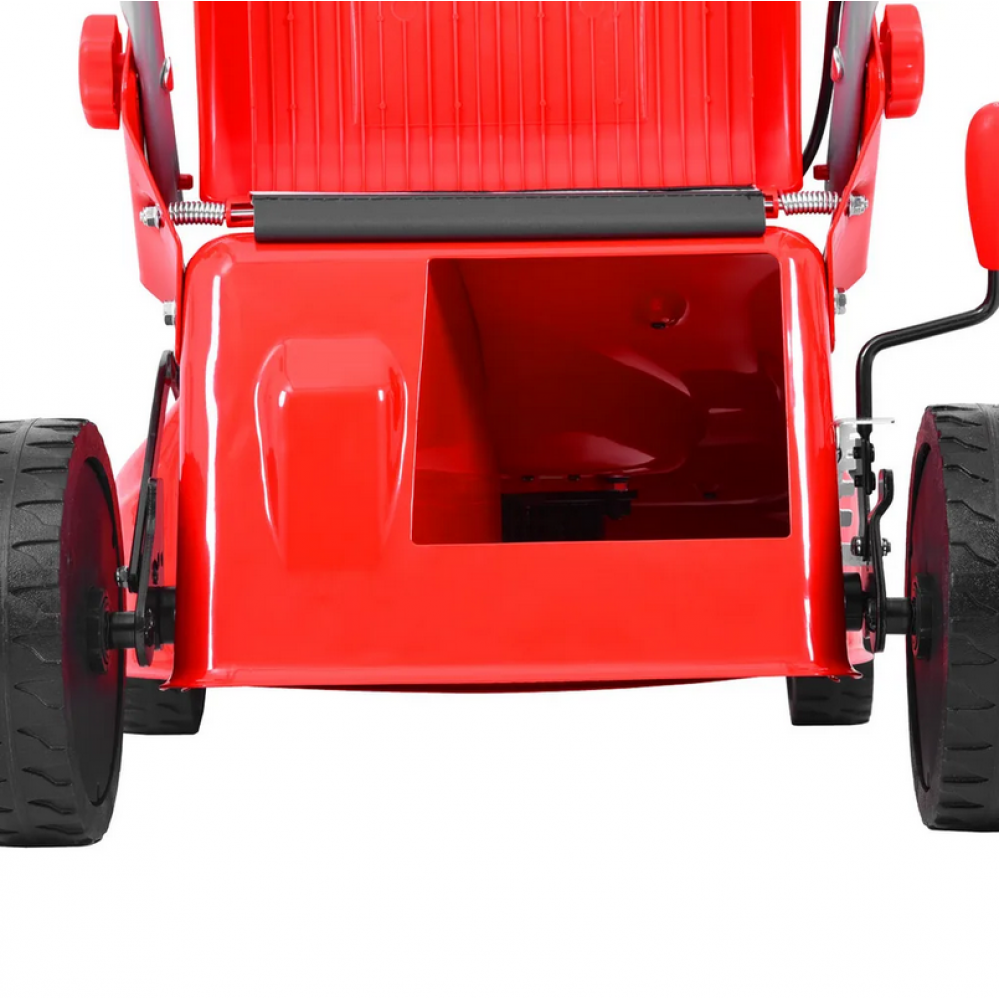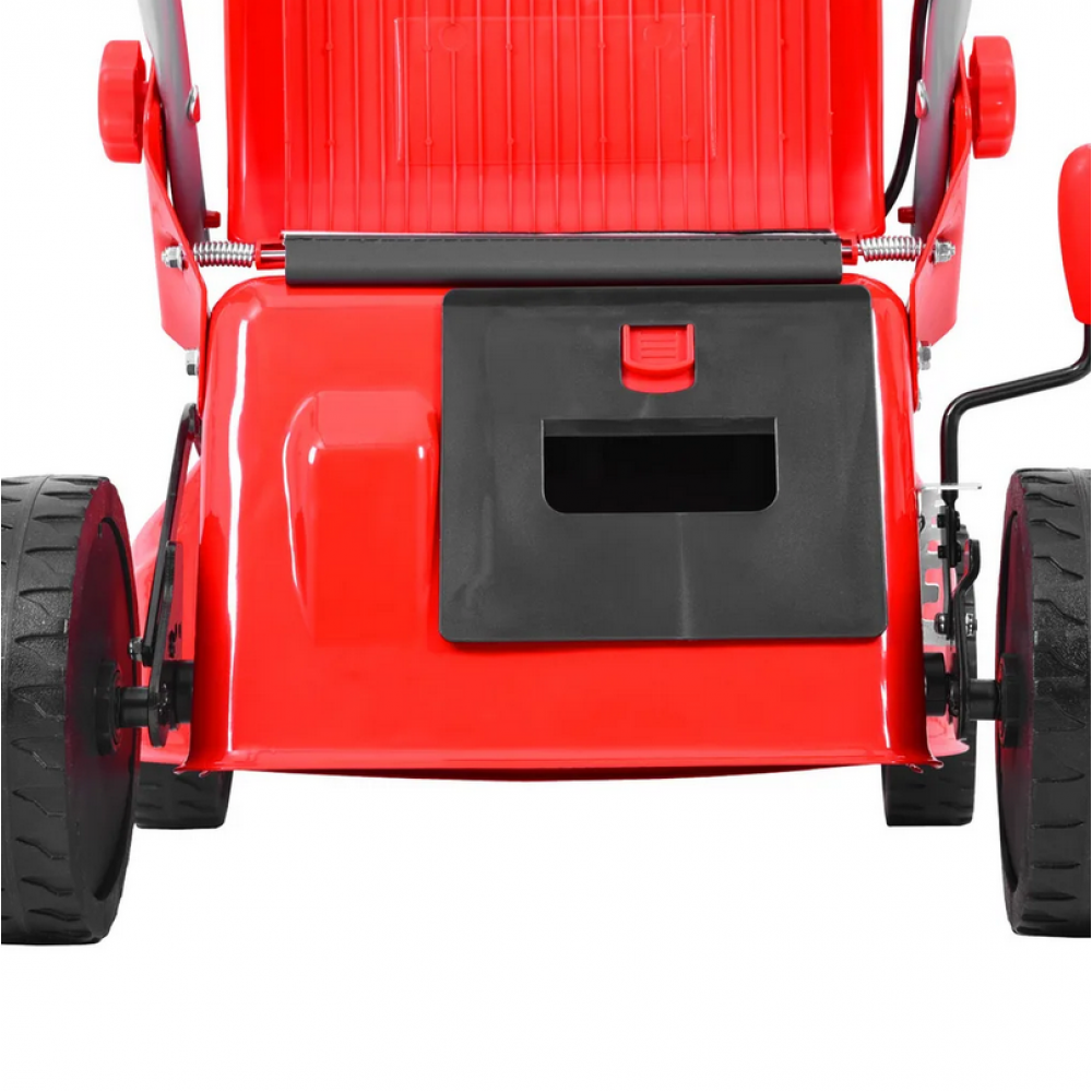 - Об'єм кошика 50 л — з індикатором заповнення для зручного збору трави.